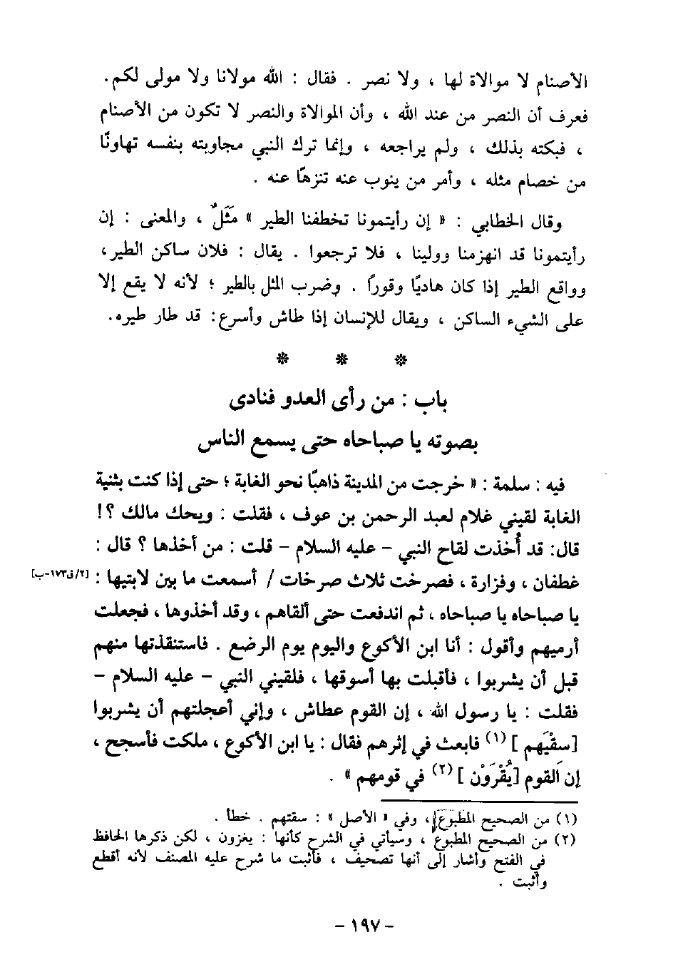 0 - باب: مَنْ رَأَى العَدُوَّ فَنَادَى بِصَوْتِهِ يَا صَبَاحَاهْ حَتَى يُسْمِعَ النَّاسَ