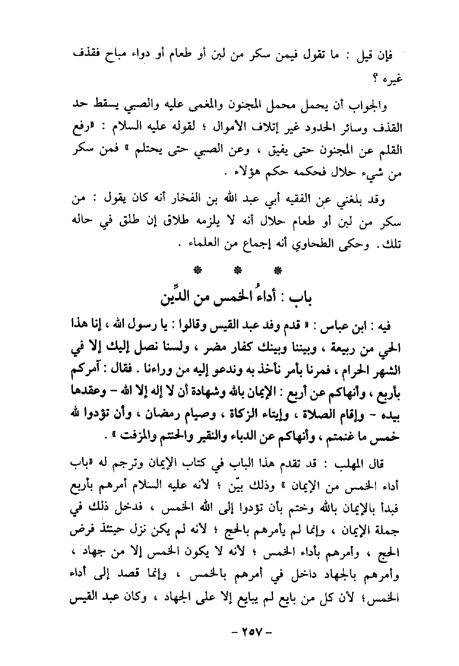 - باب: أَدَاءُ الخُمُسِ مِنَ الدِّين