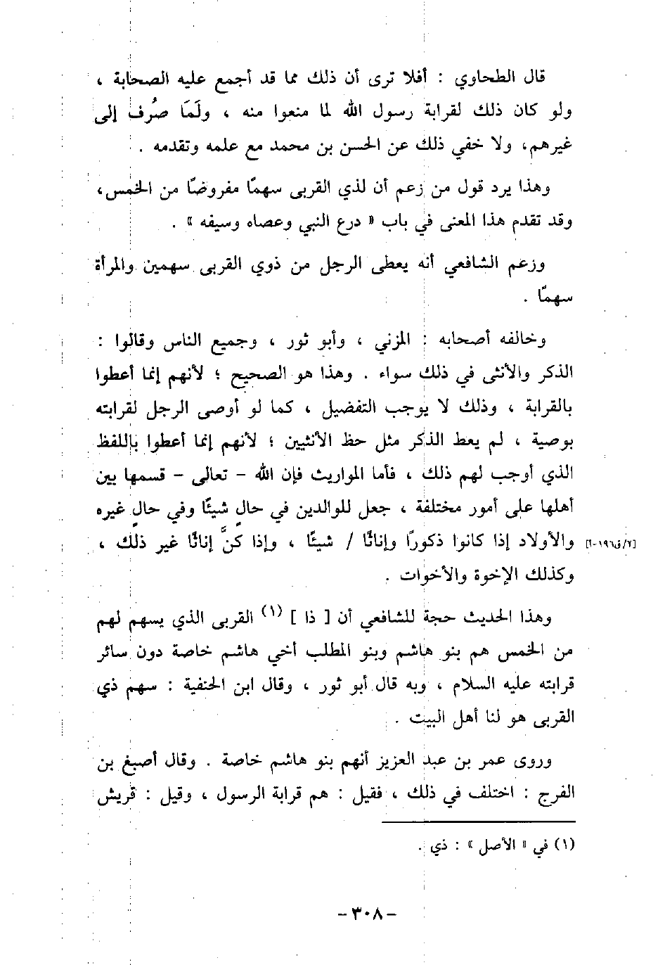 قال الطحاوى: أفلا ترى أن ذلك مما قد أجمع عليه الصحابة، ولو كان ذلك لقرابة رسول الله لما منعوا منه، ولما صرف إلى غيرهم، ولا خفى ذلك عن الحسن بن محمد مع علمه وتقدمه. وهذا يرد قول من زعم أن لذى القربى سهمًا مفروضًا من الخمس، وقد تقدم هذا المعنى فى باب (درع النبى وعصاه وسيفه) . وزعم الشافعى أنه يعطى الرجل من ذوى القربى سهمين والمرأة سهمًا. وخالفه أصحابه: المزنى، وأبو ثور، وجميع الناس وقالوا: الذكر والأنثى فى ذلك سواء. وهذا هو الصحيح؛ لأنهم إنما أعطوا بالقرابة، وذلك لا يوجب التفضيل، كما لو أوصى الرجل لقرابته بوصية، لم يعط الذكر مثل حظ الأثنيين؛ لأنهم إنما أعطوا باللفظ الذى أوجب لهم ذلك، فأما المواريث فإن الله تعالى قسمها بين أهلها على أمور مختلفة، جعل للوالدين فى حال شيئًا وفى حال غيره والأولاد إذا كانوا ذكورًا وإناثًا شيئًا، وإذا كن إناثًا غير ذلك، وكذلك الإخوة والأخوات. وهذا الحديث حجة للشافعى أن ذا القربى الذى يسهم لهم من الخمس هم بنو هاشم وبنو المطلب أخى هاشم خاصة دون سائر قرابته (صلى الله عليه وسلم) ، وبه قال أبو ثور، وقال ابن الحنفية: سهم ذى القربى هو لنا أهل البيت. وروى عمر بن عبد العزيز أنهم بنو هاشم خاصة. وقال أصبغ بن الفرج: اختلف فى ذلك، فقيل: هم قرابة الرسول، وقيل: قريش