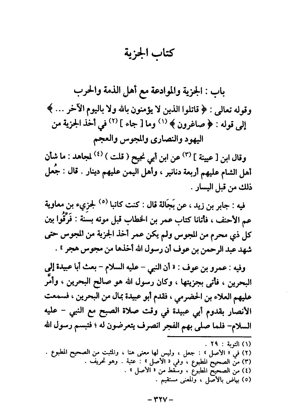 - باب الْجِزْيَةِ وَالْمُوَادَعَةِ مَعَ أَهْل الذمةِ وَالْحَرْبِ