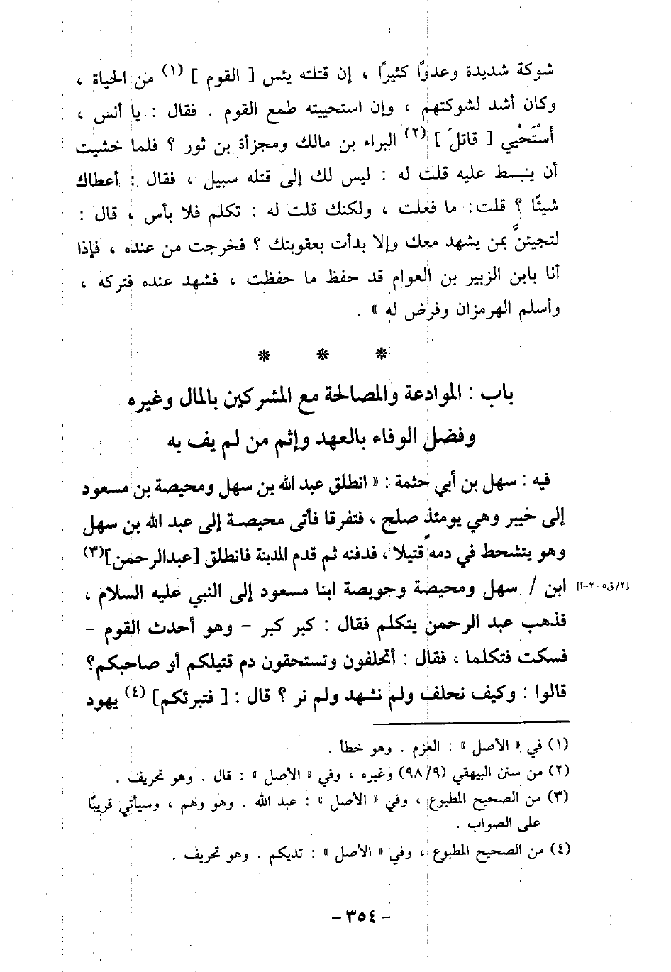 - باب الْمُوَادَعَةِ وَالْمُصَالَحَةِ مَعَ الْمُشْرِكِينَ بِالْمَالِ وَغَيْرِهِ وَفَضْلُ الوَفَاءِ بِالْعَهْدِ وَإِثْمِ مَنْ لَمْ يَفِ بِهِ