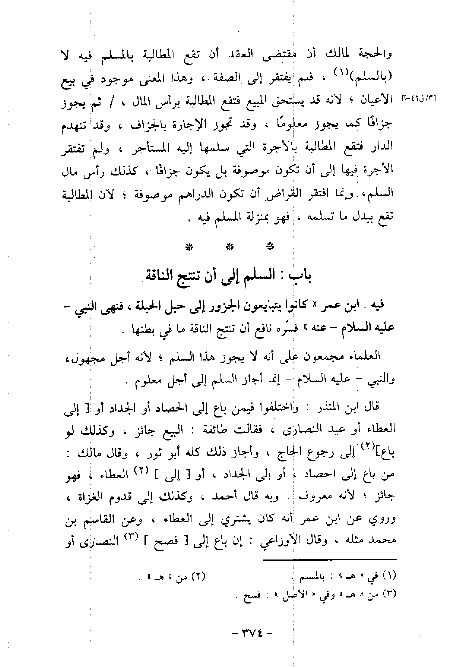 / 9 - فيه ابن عمر: كَانُوا يَتَبَايَعُونَ الْجَزُورَ إِلَى حَبَلِ الْحَبَلَةِ، فَنَهَى النَّبِىُّ، عليه السَّلام، عَنْهُ. فَسَّرَهُ نَافِعٌ، أَنْ تُنْتَجَ النَّاقَةُ مَا فِى بَطْنِهَا. العلماء مجمعون على أنه لا يجوز هذا السلم؛ لأنه أجل مجهول، والنبى - عليه السلام - إنما أجاز السلم إلى أجل معلوم. قال ابن المنذر: واختلفوا فيمن باع إلى الحصاد أو الجداد أو إلى العطاء أو عيد النصارى، فقالت طائفة: البيع جائز، وكذلك لو باع إلى رجوع الحاج، وأجاز ذلك كله أبو ثور، وقال مالك: من باع إلى الحصاد، أو إلى الجداد، أو إلى العطاء، فهو جائز؛ لأنه معروف. وبه قال أحمد. وكذلك إلى قدوم الغزاة، وروى عن ابن عمر أنه كان يشترى إلى العطاء، وعن القاسم بن محمد مثله، وقال الأوزاعى: إن باع إلى فصح النصارى أو