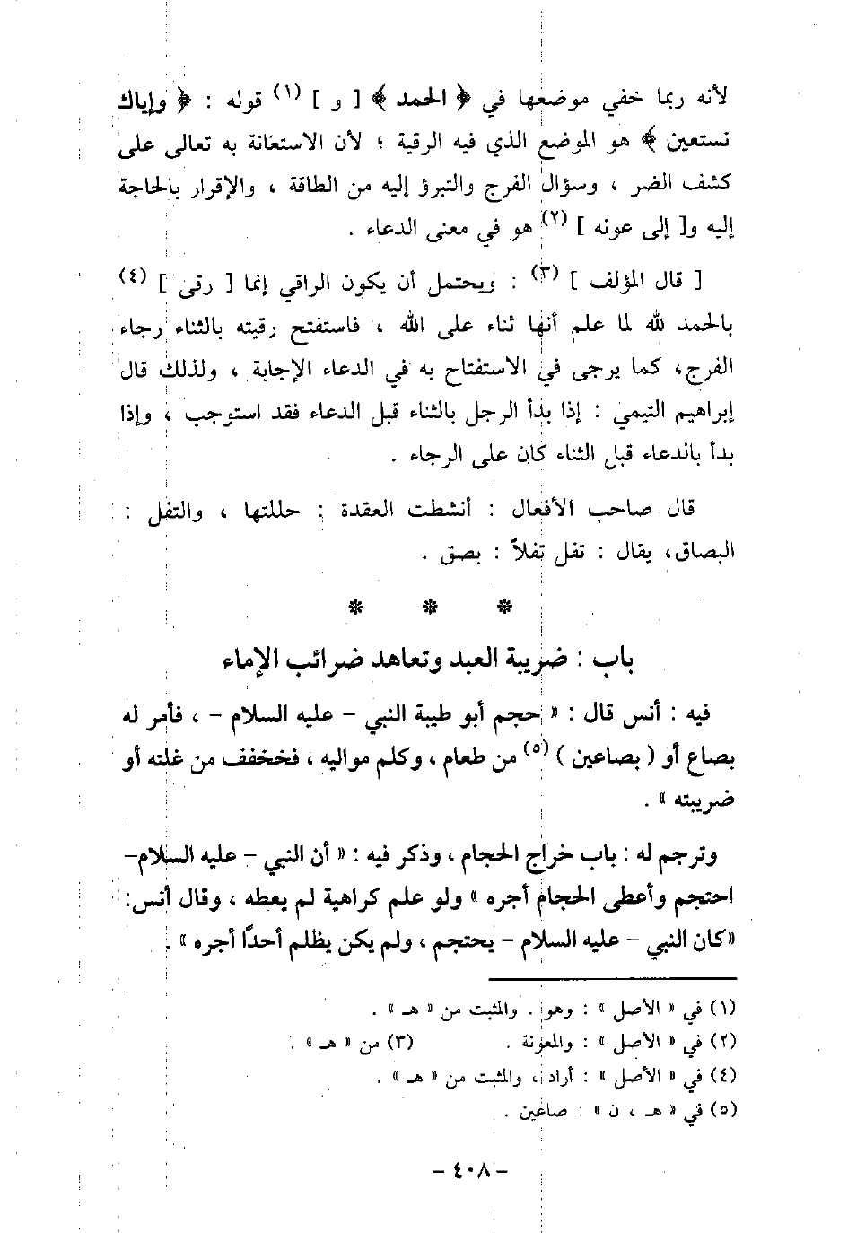 / 16 - فيه: أَنَس، قَالَ: حَجَمَ أَبُو طَيْبَةَ النَّبِىَّ، عليه السَّلام، فَأَمَرَ لَهُ بِصَاعٍ، أَوْ بِصَاعَيْنِ مِنْ طَعَامٍ، وَكَلَّمَ مَوَالِيَهُ، فَخَفَّفَ عَنْ غَلَّتِهِ أَوْ ضَرِيبَتِهِ. وترجم له: باب خراج الحجام. وذكر فيه: (أن النبى - عليه السلام - احتجم وأعطى الحجام أجره) ولو علم كراهية لم يعطه، وقال أنس: (كان النبى - عليه السلام - يحتجم، ولم يكن يظلم أحدًا أجره) .