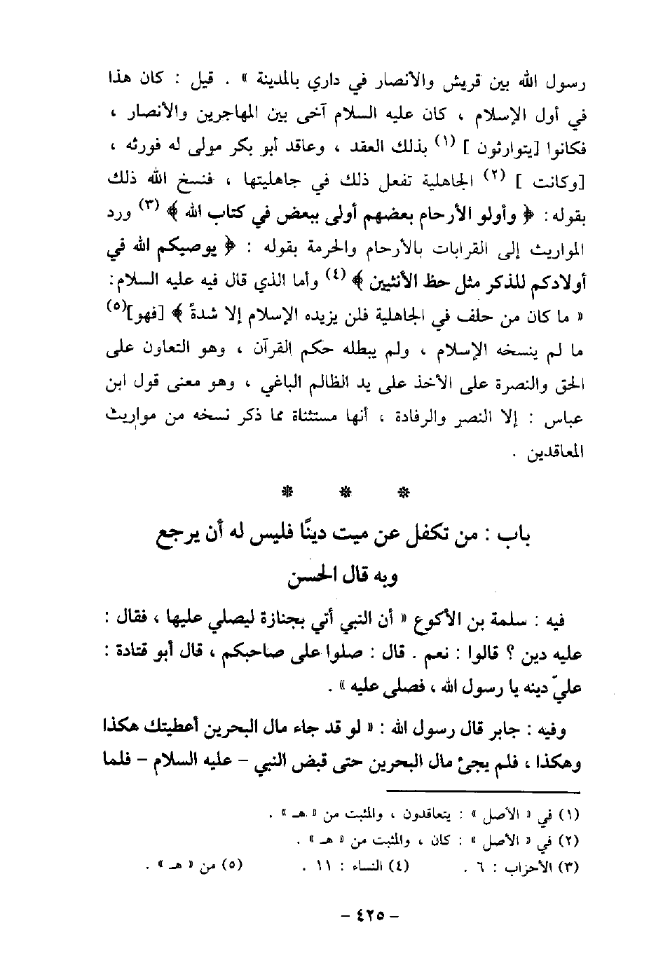 5 - بَاب مَنْ تَكَفَّلَ عَنْ مَيِّتٍ دَيْنًا فَلَيْسَ لَهُ أَنْ يَرْجِعَ وَبِهِ قَالَ الْحَسَنُ