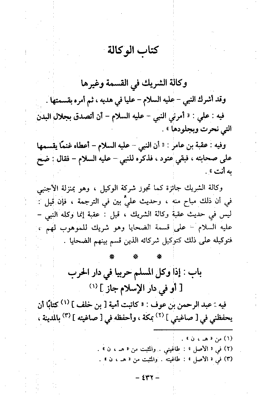 - بَاب إِذَا وَكَّلَ الْمُسْلِمُ حَرْبِيًّا فِى دَارِ الْحَرْبِ أَوْ فِى دَارِ الإِسْلاَمِ جَازَ