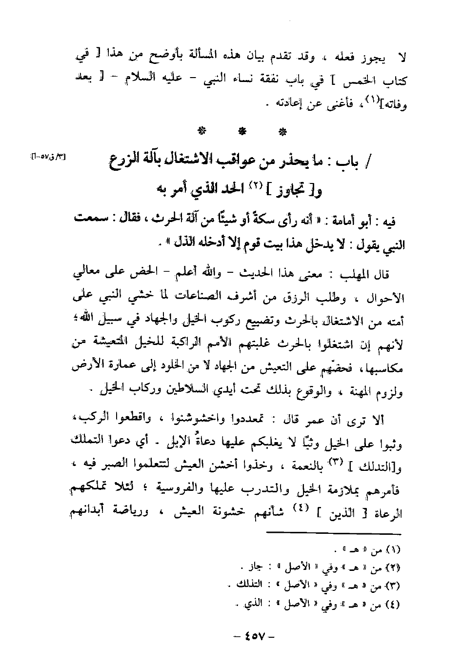 - بَاب مَا يُحَذَّرُ مِنْ عَوَاقِبِ الاشْتِغَالِ بِآلَةِ الزَّرْعِ وَتَجَاوِزِ الْحَدِّ الَّذِى أُمِرَ بِهِ