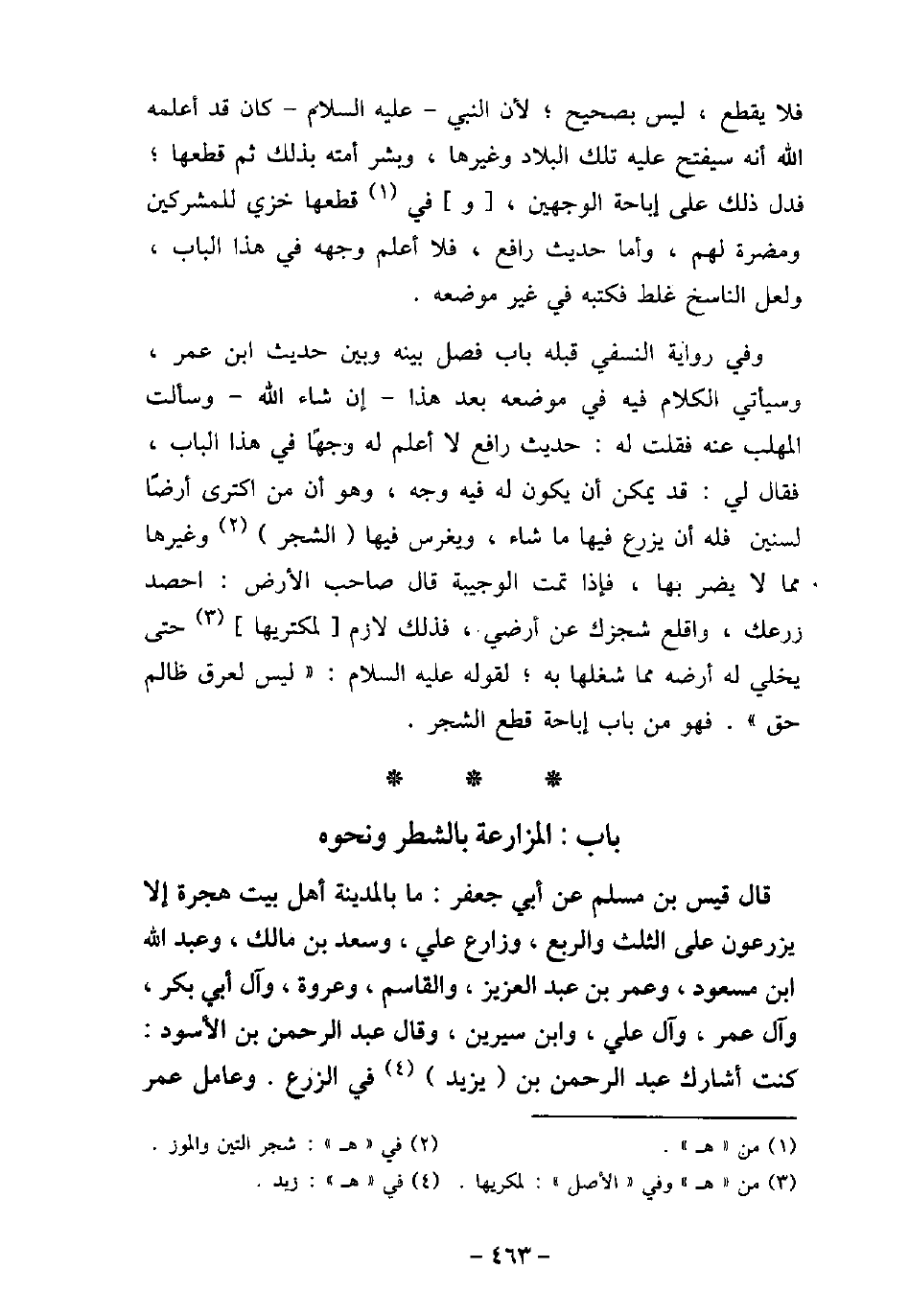 قَالَ قَيْسُ بْنُ مُسْلِمٍ، عَنْ أَبِى جَعْفَرٍ: مَا بِالْمَدِينَةِ أَهْلُ بَيْتِ هِجْرَةٍ إِلاَ يَزْرَعُونَ عَلَى الثُّلُثِ وَالرُّبُعِ وَزَارَعَ عَلِىٌّ وَسَعْدُ بْنُ مَالِكٍ، وَعَبْدُاللَّهِ بْنُ مَسْعُودٍ، وَعُمَرُ بْنُ عَبْدِالْعَزِيزِ، وَالْقَاسِمُ، وَعُرْوَةُ، وَآلُ أَبِى بَكْرٍ، وَآلُ عُمَرَ، وَآلُ عَلِىٍّ، وَابْنُ سِيرِينَ. وَقَالَ عَبْدُالرَّحْمَنِ ابْنُ الأَسْوَدِ: كُنْتُ أُشَارِكُ عَبْدَالرَّحْمَنِ بْنَ يَزِيدَ فِى الزَّرْعِ، وَعَامَلَ عُمَرُ