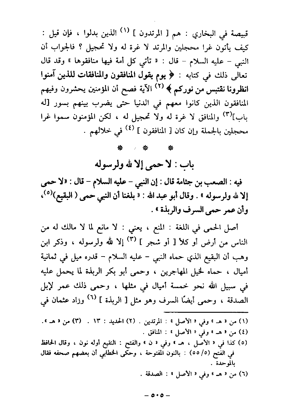 - بَاب لاَ حِمَى إِلاَ لِلَّهِ وَلِرَسُولِهِ (صلى الله عليه وسلم)
