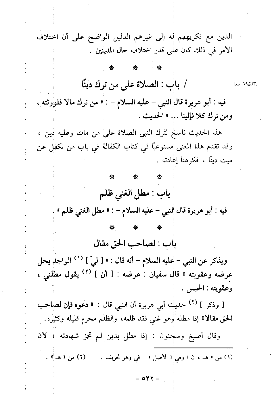 / 11 - فيه: أَبُو هُرَيْرَةَ، قَالَ النَّبِىّ، عليه السَّلام: (مَطْلُ الْغَنِىِّ ظُلْمٌ) .