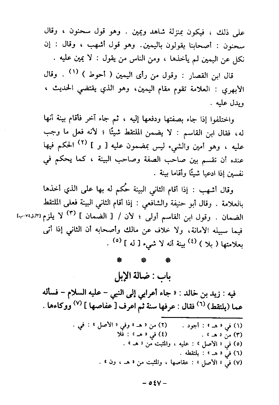 / 2 - فيه: زَيْدِ بْنِ خَالِدٍ، جَاءَ أَعْرَابِىٌّ إلى النَّبِىَّ، عليه السَّلام، فَسَأَلَهُ عَمَّا يَلْتَقِطُ، فَقَالَ: (عَرِّفْهَا سَنَةً، ثُمَّ اعْرَفْ عِفَاصَهَا وَوِكَاءَهَا،