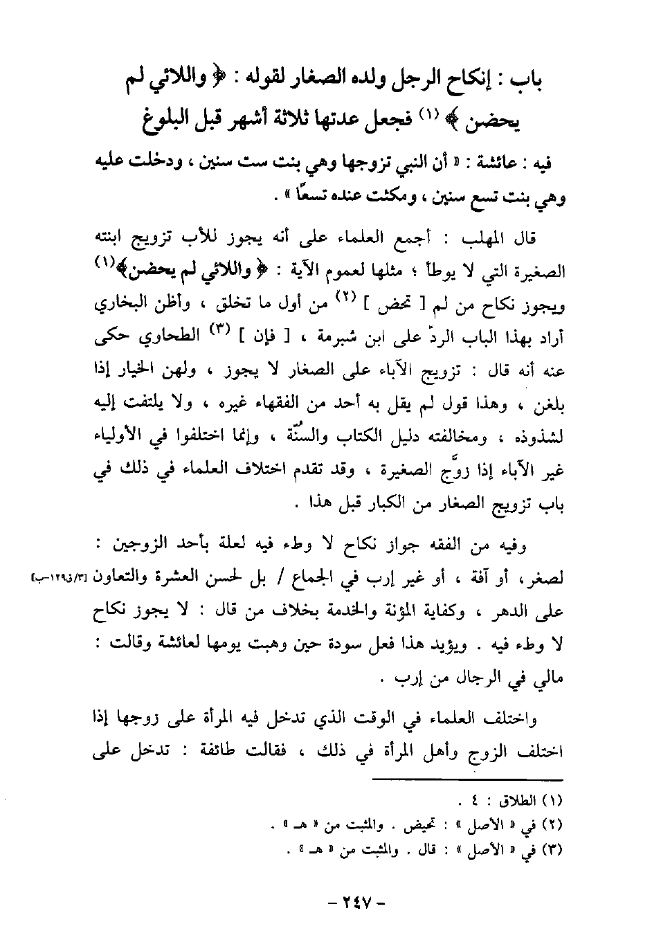 - باب إِنْكَاحِ الرَّجُلِ وَلَدَهُ الصِّغَارَ لقوله: (وَاللائِى لَمْ يَحِضْنَ) [الطلاق: 4] ، فَجَعَلَ عِدَّتَهَا ثَلاثَةَ أَشْهُرٍ قَبْلَ الْبُلُوغِ