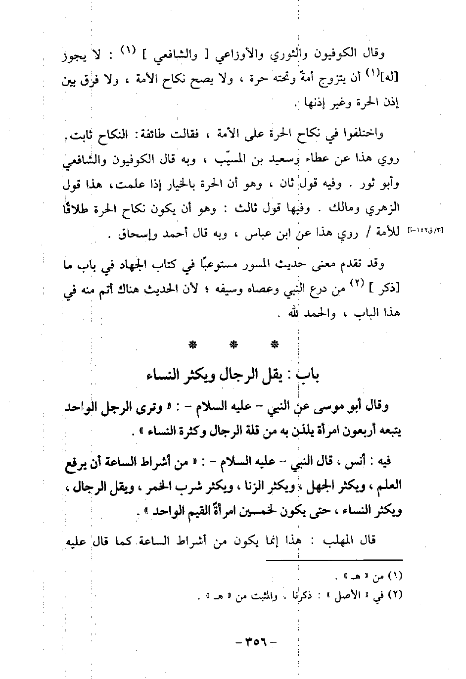 وَقَالَ أَبُو مُوسَى، عَنِ النَّبِىِّ، عَلَيْهِ السَّلام: (وَتَرَى الرَّجُلَ الْوَاحِدَ يَتْبَعُهُ أَرْبَعُونَ امْرَأَةً يَلُذْنَ بِهِ مِنْ قِلَّةِ الرِّجَالِ، وَكَثْرَةِ النِّسَاءِ) . / 118 - فيه: أَنَس، قَالَ النَّبِىّ، عَلَيْهِ السَّلام: (إِنَّ مِنْ أَشْرَاطِ السَّاعَةِ أَنْ يُرْفَعَ الْعِلْمُ، وَيَكْثُرَ الْجَهْلُ، وَيَكْثُرَ الزِّنَا، وَيَكْثُرَ شُرْبُ الْخَمْرِ، وَيَقِلَّ الرِّجَالُ، وَيَكْثُرَ النِّسَاءُ، حَتَّى يَكُونَ لِخَمْسِينَ امْرَأَةً الْقَيِّمُ الْوَاحِدُ) . قال المهلب: هذا إنما يكون من أشراط الساعة، كما قال عليه