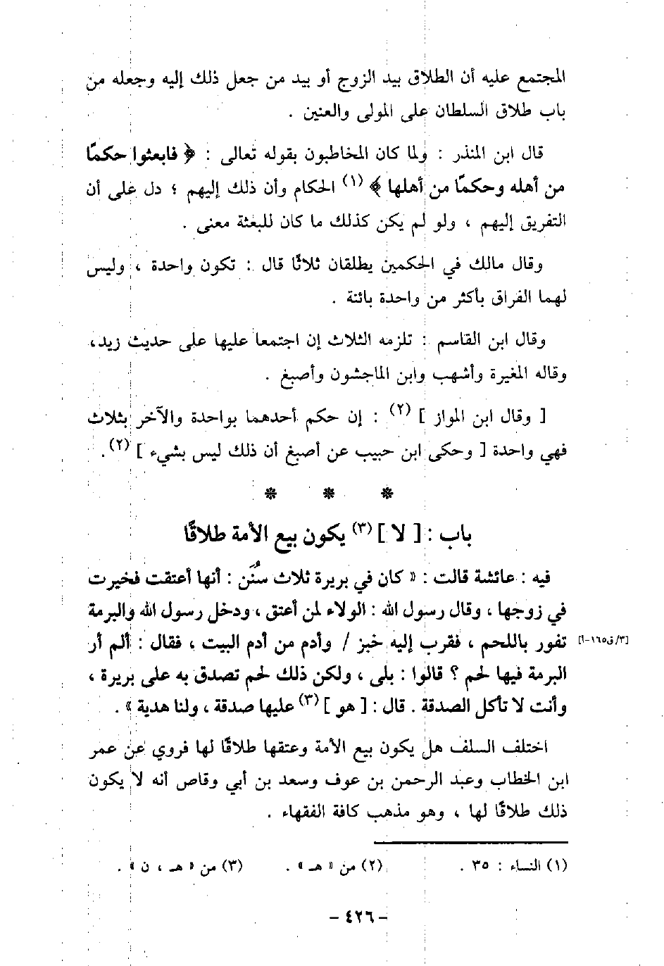 - باب لا يَكُونُ بَيْعُ الأمَةِ طَلاقًا