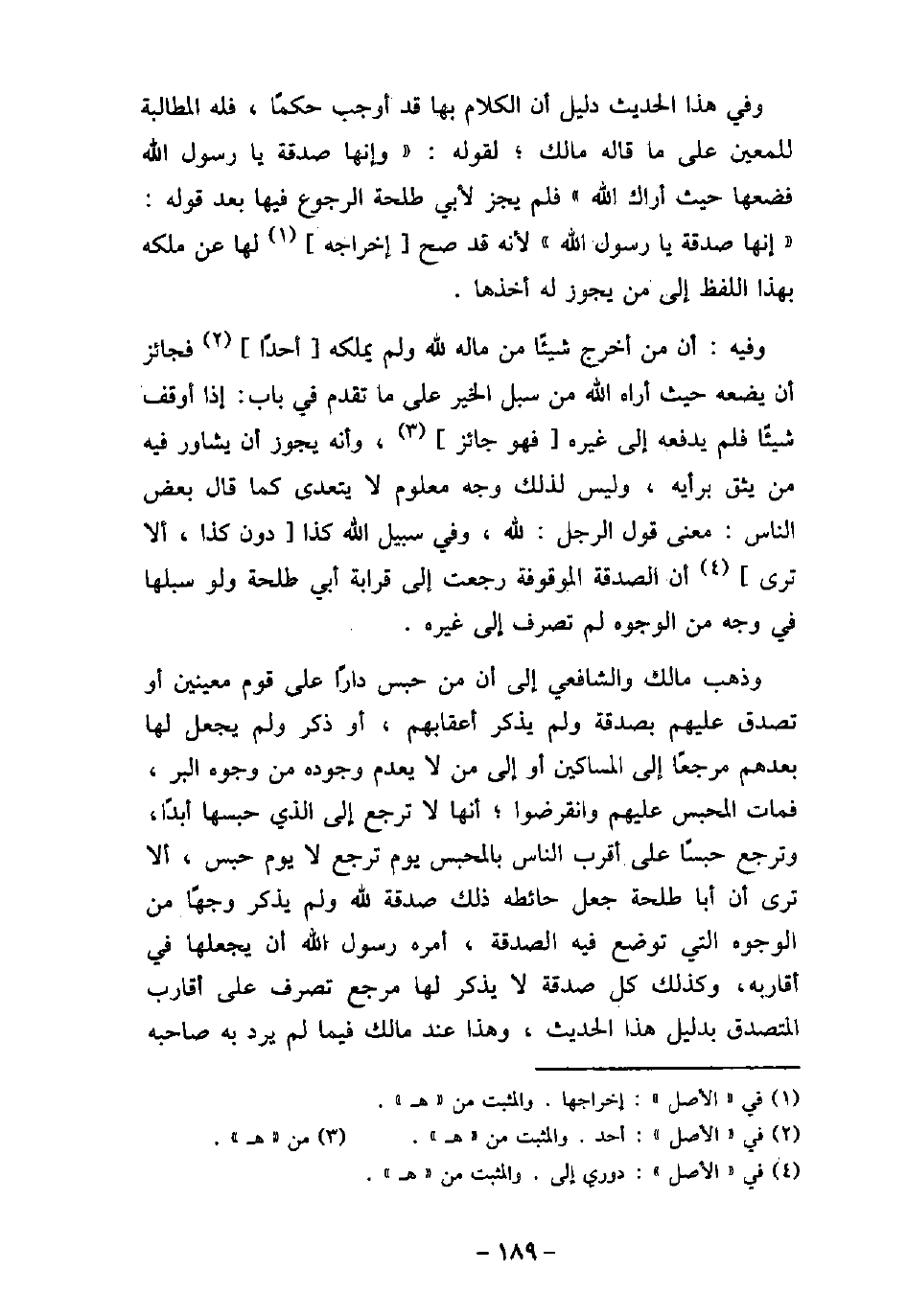 وفى هذا الحديث دليل أن الكلام بها قد أوجب حكمًا، فله المطالبة للمعين على ما قاله مالك؛ لقوله: (وإنها صدقة يا رسول الله فضعها حيث أراك الله) فلم يجز لأبى طلحة الرجوع فيها بعد قوله: (إنها صدقة يا رسول الله) لأنه قد صح إخراجه لها عن ملكه بهذا اللفظ إلى ما يجوز له أخذها. وفيه: أن من أخرج شيئًا من ماله ولم يملكه أحدًا فجائز أن يضعه حيث أراه الله من سبل الخير على ما تقدم فى باب: إذا أوقف شيئًا فلم يدفعه إلى غيره فهو جائز، وأنه يجوز أن يشاور فيه من يثق برأيه، وليس لذلك وجه معلوم لا يتعدى كما قال بعض الناس: معنى قول الرجل: لله، وفى سبيل الله كذا دون كذا، ألا ترى أن الصدقة الموقوفة رجعت إلى قرابة أبى طلحة ولو سبلها فى وجه من الوجوه لم تصرف إلى غيره. وذهب مالك والشافعى إلى أن من حبس دارًا على قوم معينين أو تصدق عليهم بصدقة ولم يذكر أعقابهم، أو ذكر ولم يجعل لها بعدهم مرجعًا إلى المساكين أو إلى من لا يعدم وجوده من وجوه البر، فمات المحبس عليهم وانقرضوا؛ أنها لا ترجع إلى الذى حبسها أبدًا، وترجع حبسًا على أقرب الناس بالمحبس يوم ترجع لا يوم حبس، ألا ترى أن أبا طلحة جعل حائطه ذلك صدقة لله ولم يذكر وجهًا من الوجوه التى توضع فيه الصدقة، أمره رسول الله (صلى الله عليه وسلم) أن يجعلها فى أقاربه، وكذلك كل صدقة لا يذكر لها مرجع تصرف على أقارب المتصدق بدليل هذا الحديث، وهذا عند مالك فيما لم يرد به صاحبه