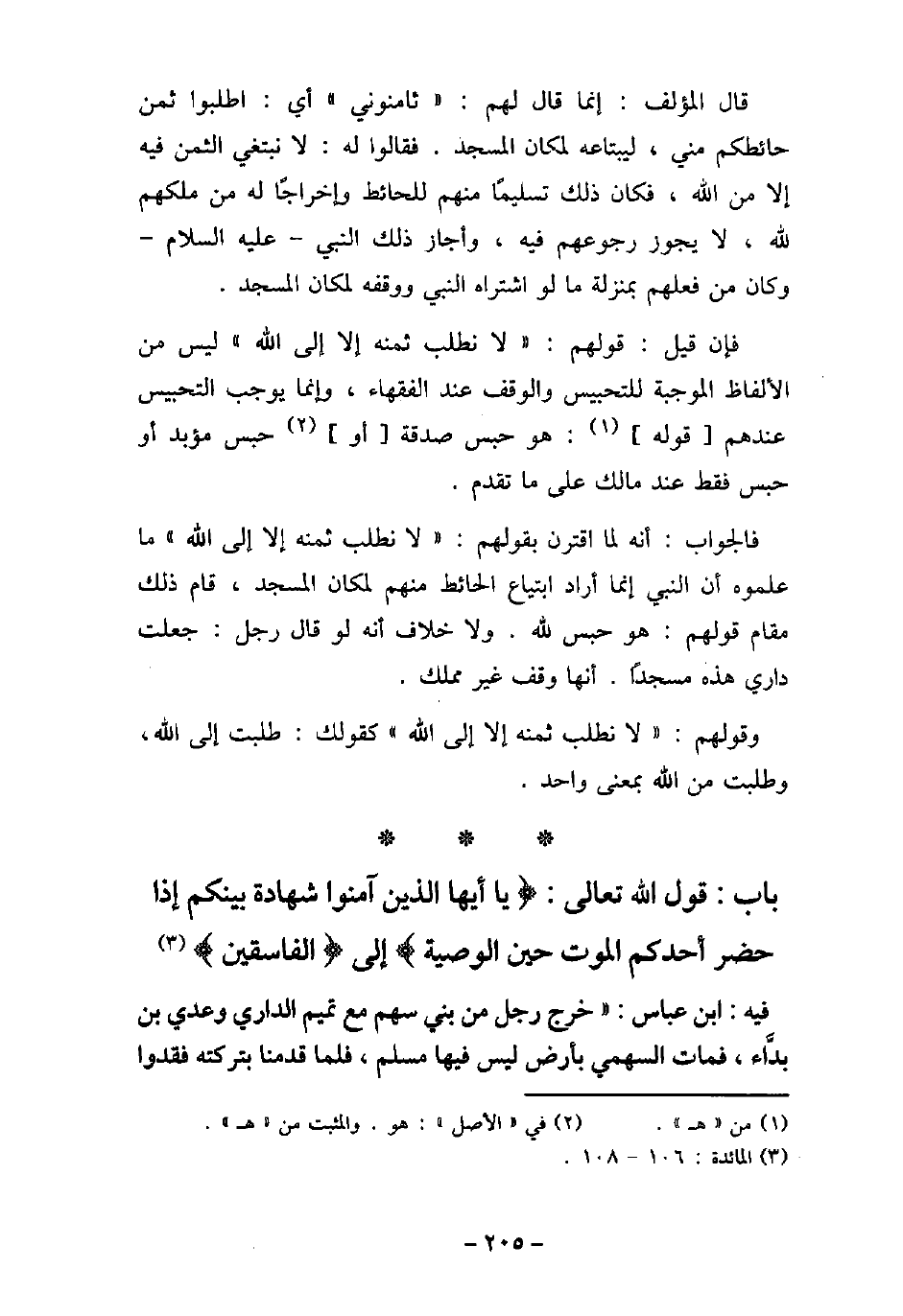 32 - باب قَوْلِ اللَّهِ تَعَالَى: (يَا أَيُّهَا الَّذِينَ آمَنُوا شَهَادَةُ بَيْنِكُمْ إِذَا حَضَرَ أَحَدَكُمُ الْمَوْتُ حِينَ الْوَصِيَّةِ (إلى) الْفَاسِقِينَ) [المائدة: 106]
