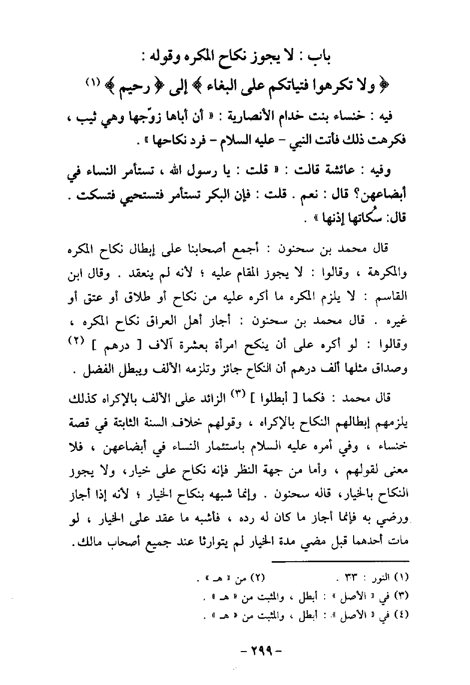 4 - باب لا يَجُوزُ نِكَاحُ الْمُكْرَهِ وَقَوله: (وَلا تُكْرِهُوا فَتَيَاتِكُمْ عَلَى الْبِغَاءِ (إِلَى) رَحِيمٌ) [النور: 33]