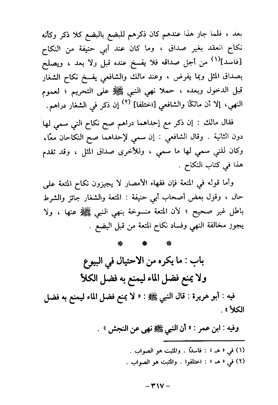 / 9 - فيه: أَبُو هُرَيْرَةَ، قَالَ النَّبىُّ: (لا يُمْنَعُ فَضْلُ الْمَاءِ؛ لِيُمْنَعَ بِهِ فَضْلُ الْكَلإ) . / 10 - وفيه: ابْنِ عُمَرَ: أَنَّ رَسُولَ اللَّهِ (صلى الله عليه وسلم) نَهَى عَنِ النَّجْشِ.