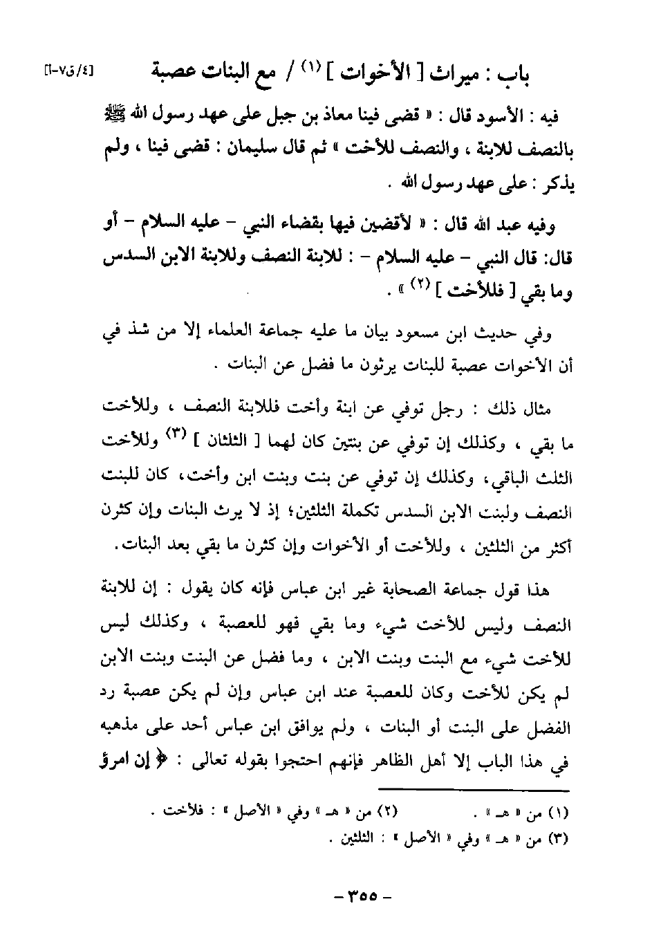 - باب مِيرَاثُ الأخَوَاتِ مَعَ الْبَنَاتِ عَصَبَةٌ