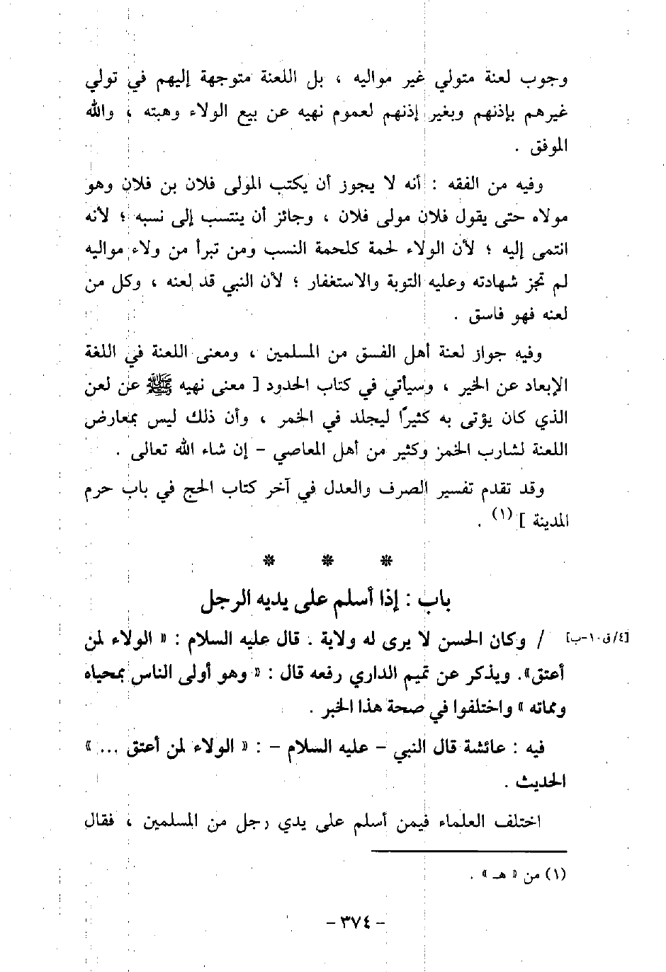 - باب إِذَا أَسْلَمَ عَلَى يَدَيْهِ الرجل