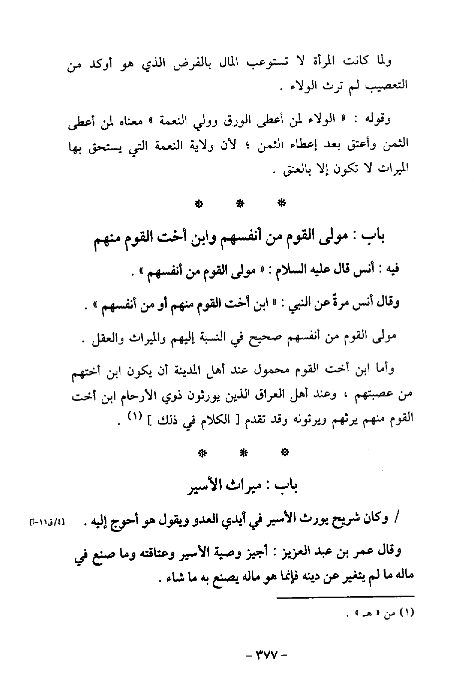 - باب مَوْلَى الْقَوْمِ مِنْ أَنْفُسِهِمْ وَابْنُ أخْتِ القوم مِنْهُمْ