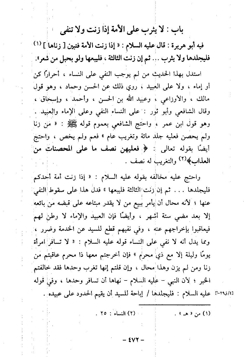 - باب لا يُثَرَّبُ عَلَى الأمَةِ إِذَا زَنَتْ وَلا تُنْفَى