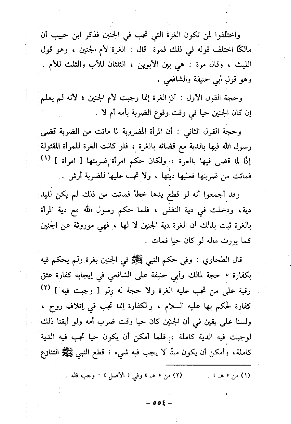 واختلفوا لمن تكون الغرة التى تجب فى الجنين فذكر ابن حبيب أن مالكًا اختلف قوله فى ذلك فمرة قال: الغرة لأم الجنين، وهو قول الليث، وقال مرة: هى بين الأبوين، الثلثان للأب والثلث للأم. وهو قول أبى حنيفة والشافعى. وحجة القول الأول: إن الغرة إنما وجبت لأم الجنين؛ لأنه لم يعلم إن كان الجنين حيا فى وقت وقوع الضربة بأمه أم لا. وحجة القول الثانى: أن المرأة المضروبة لما ماتت من الضربة قضى رسول الله (صلى الله عليه وسلم) فيها بالدية مع قضائه بالغرة، فلو كانت الغرة للمرأة المقتولة إذًا لما قضى فيها بالغرة، ولكان حكم امرأة ضربتها امرأة فماتت من ضربتها فعليها ديتها، ولا تجب عليها للضربة أرش. وقد أجمعوا أنه لو قطع يدها خطأ فماتت من ذلك لم يكن لليد دية، ودخلت فىدية النفس، فلما حكم رسول الله (صلى الله عليه وسلم) مع دية المرأة بالغرة ثبت بذلك أن الغرة دية الجنين لا لها، فهى موروثة عن الجنين كما يورث ماله لو كان حيا فمات. قال الطحاوى: وفى حكم النبى (صلى الله عليه وسلم) فى الجنين بغرة ولم يحكم فيه بكفارة؛ حجة لمالك وأبى حنيفة على الشافعى فى إيجابه كفارة عتق رقبة على من تجب عليه الغرة ولا حجة له، ولو وجبت فيه كفارة لحكم بها (صلى الله عليه وسلم) ، والكفارة إنما تجب فى إتلاف روح، ولسنا على يقين فى أن الجنين كان حيا وقت ضربه أمه ولو أيقنا ذلك لوجبت فيه الدية كاملة، فلما أمكن أن يكون حيا تجب فيه الدية كاملة، وأمكن أن يكون ميتًا لا يجب فيه شىء؛ قطع النبى (صلى الله عليه وسلم) التنازع
