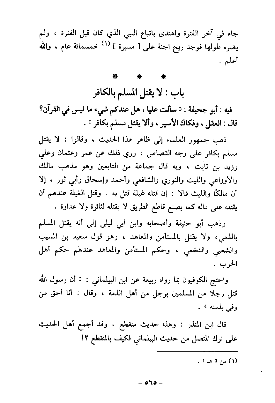 - باب لا يُقْتَلُ الْمُسْلِمُ بِالْكَافِرِ