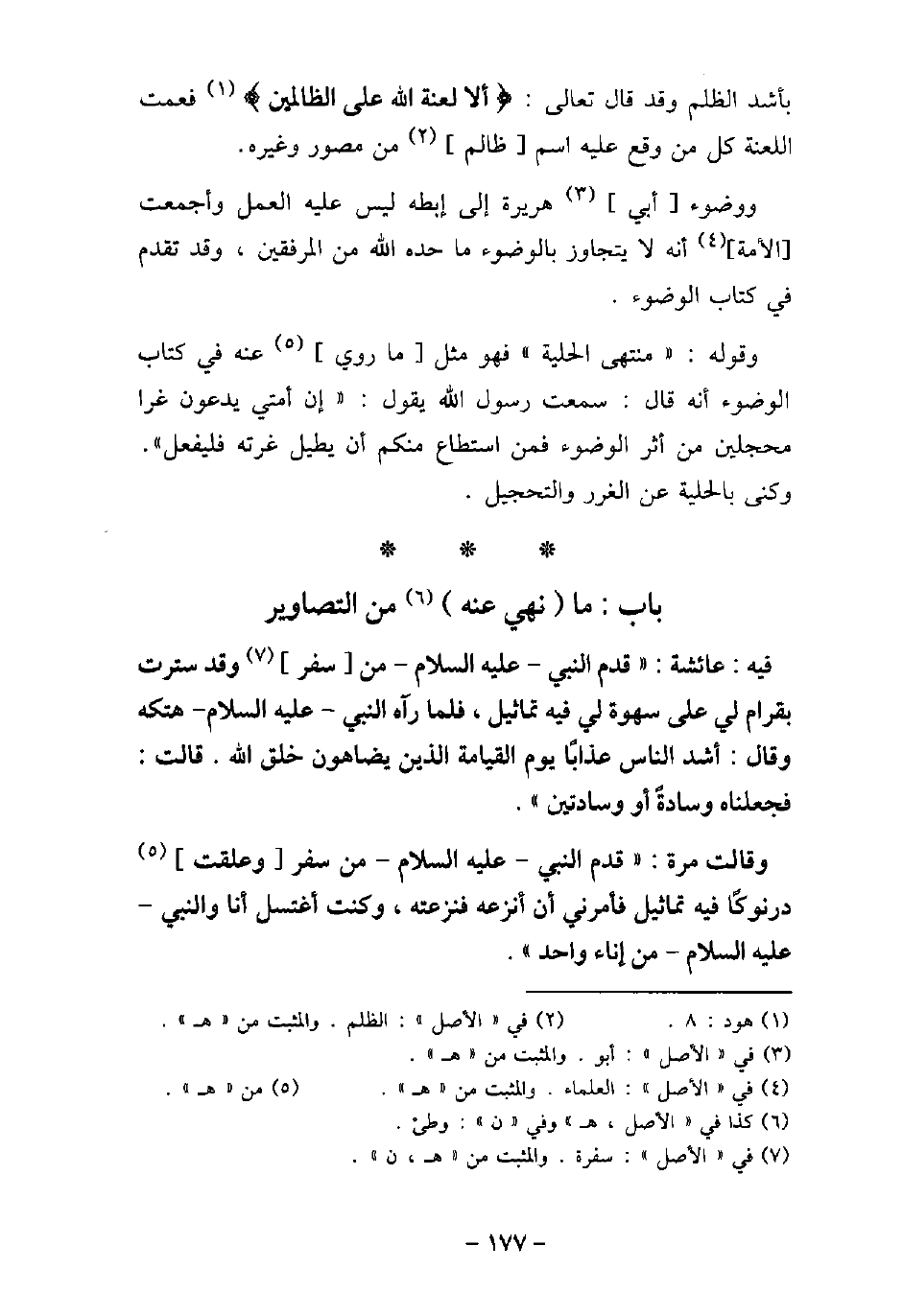بأشد الظلم وقد قال تعال: (ألا لعنة الله على الظالمين (فعمت اللعنة كل من وقع عليه اسم ظالم من مصور وغيره. ووضوء أبى هريرة إلى ابطه ليس عليه العمل وأجمعت الأمة أنه لا يتجاوز بالوضوء ماحده الله من المرفقين، وقد تقدم فى كتاب الوضوء. وقوله: (منتهى الحلية) فهو مثل ما روى عنه فى كتاب الوضوء أنه قال: سمعت رسول الله يقول: (إن أمتى يدعون غرا محجلين من أثر الوضوء فمن استطاع أن يطيل غرته فيفعل) . وكنى بالحلية عن الغرر والتحجيل.