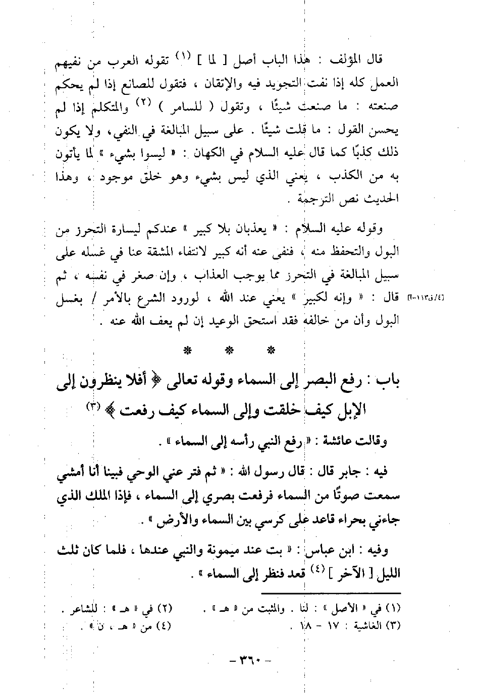 5 - باب رفع البصر إلى السماء وقوله تعالى: (أفلا ينظرون إلى الإبل كيف خلقت وإلى السماء كيف رفعت (