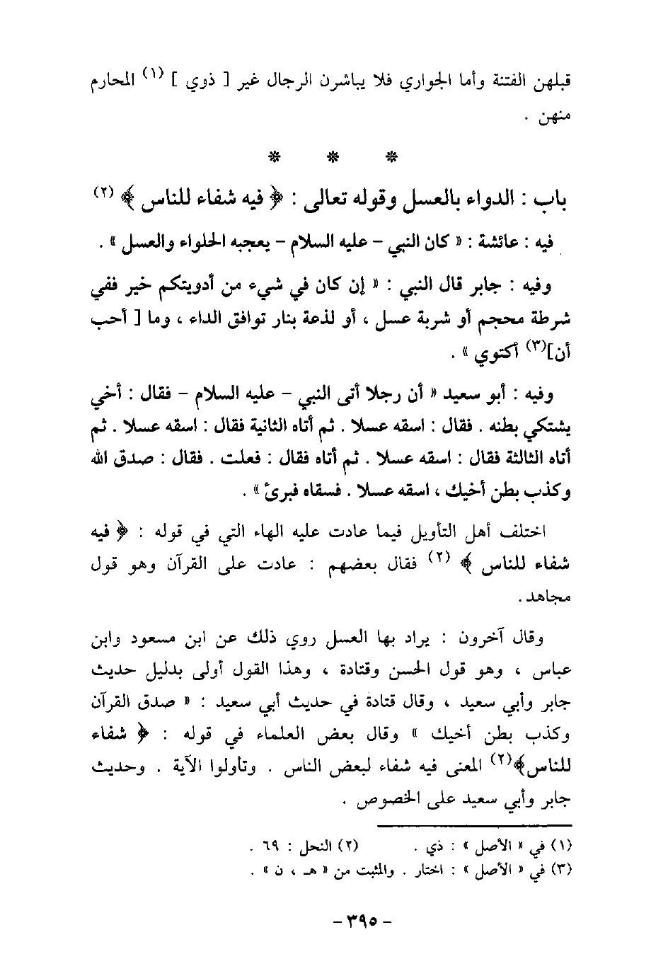 3 - باب: الدواء بالعسل وقوله تعالى: (فيه شفاء للناس
