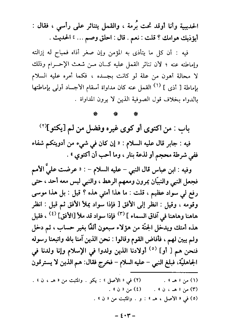- باب: من اكتوى أو كى غيره وفضل من لم يكتو