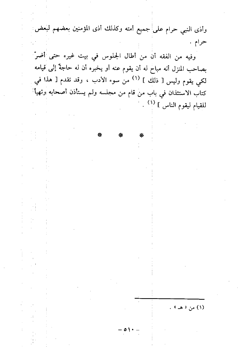 وأذى النبي حرام على جميع أمته وكذلك أذى المؤمنين بعضهم لبعض حرام. وفيه من الفقه أن من أطال الجلوس فى بيت غيره حتى أضر بصاحب المنزل أنه مباح له أن يقوم عنه أو يخبره أن له حاجة إلى قيامه لكى يقوم وليس ذلك من سوء الأدب، وقد تقدم هذا فى كتاب الإستئذان فى باب من قام من مجلسه ولم يستأذن وتهيأ للقيام ليقوم الناس.