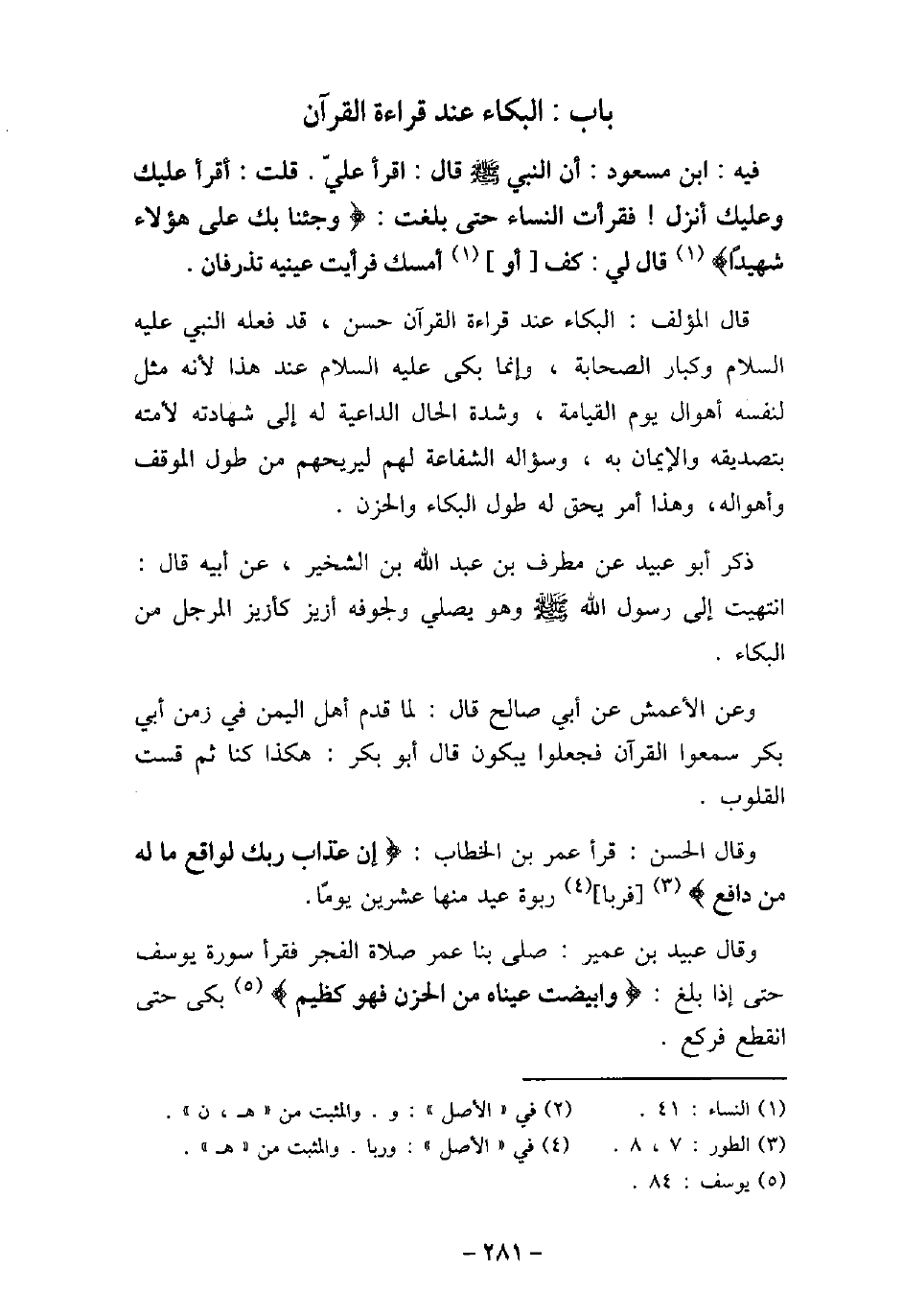 34 - باب الْبُكَاءِ عِنْدَ قِرَاءَةِ الْقُرْآنِ