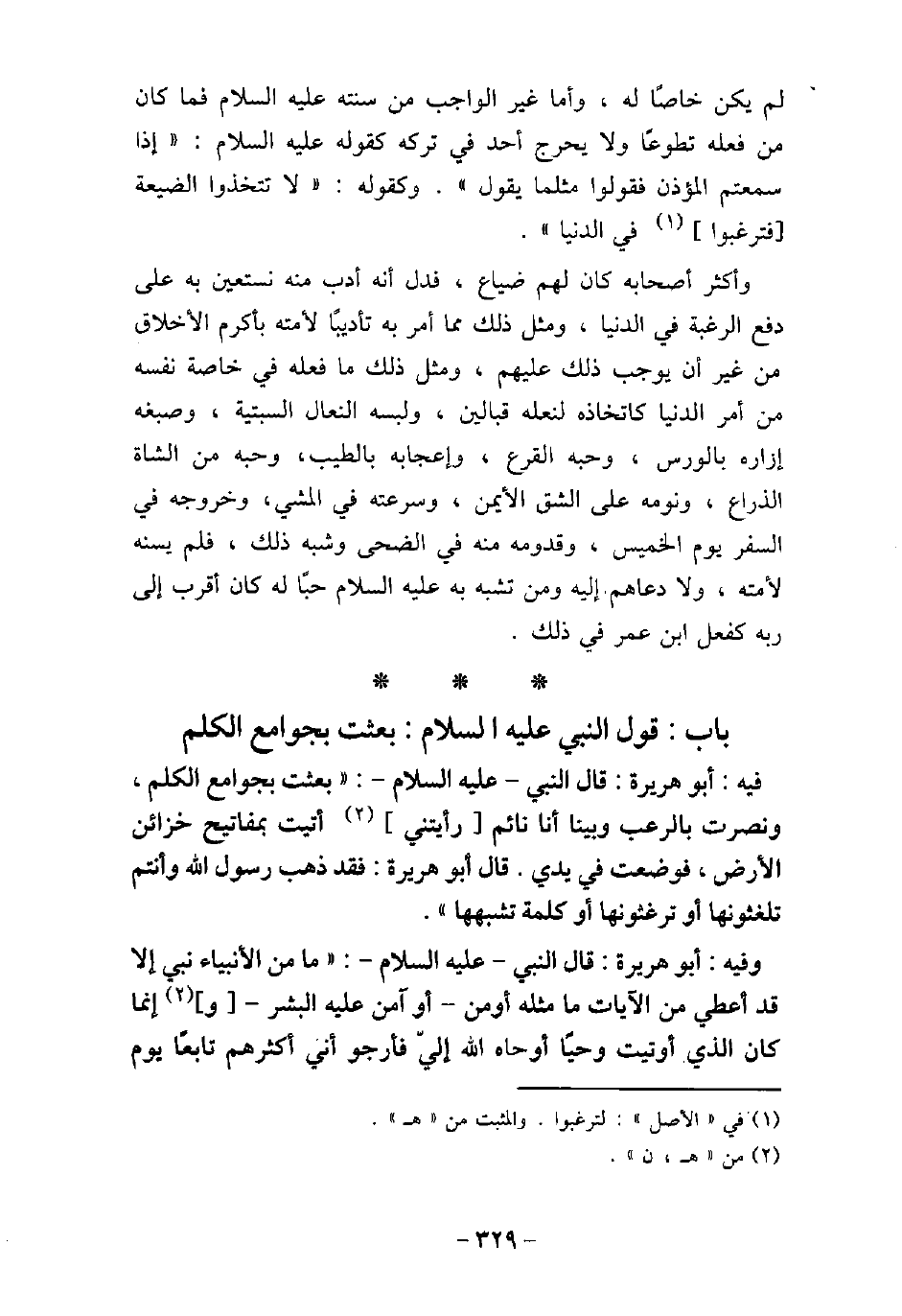- باب قَوْلِ النَّبِىِّ (صلى الله عليه وسلم) : (بُعِثْتُ بِجَوَامِعِ الْكَلِمِ