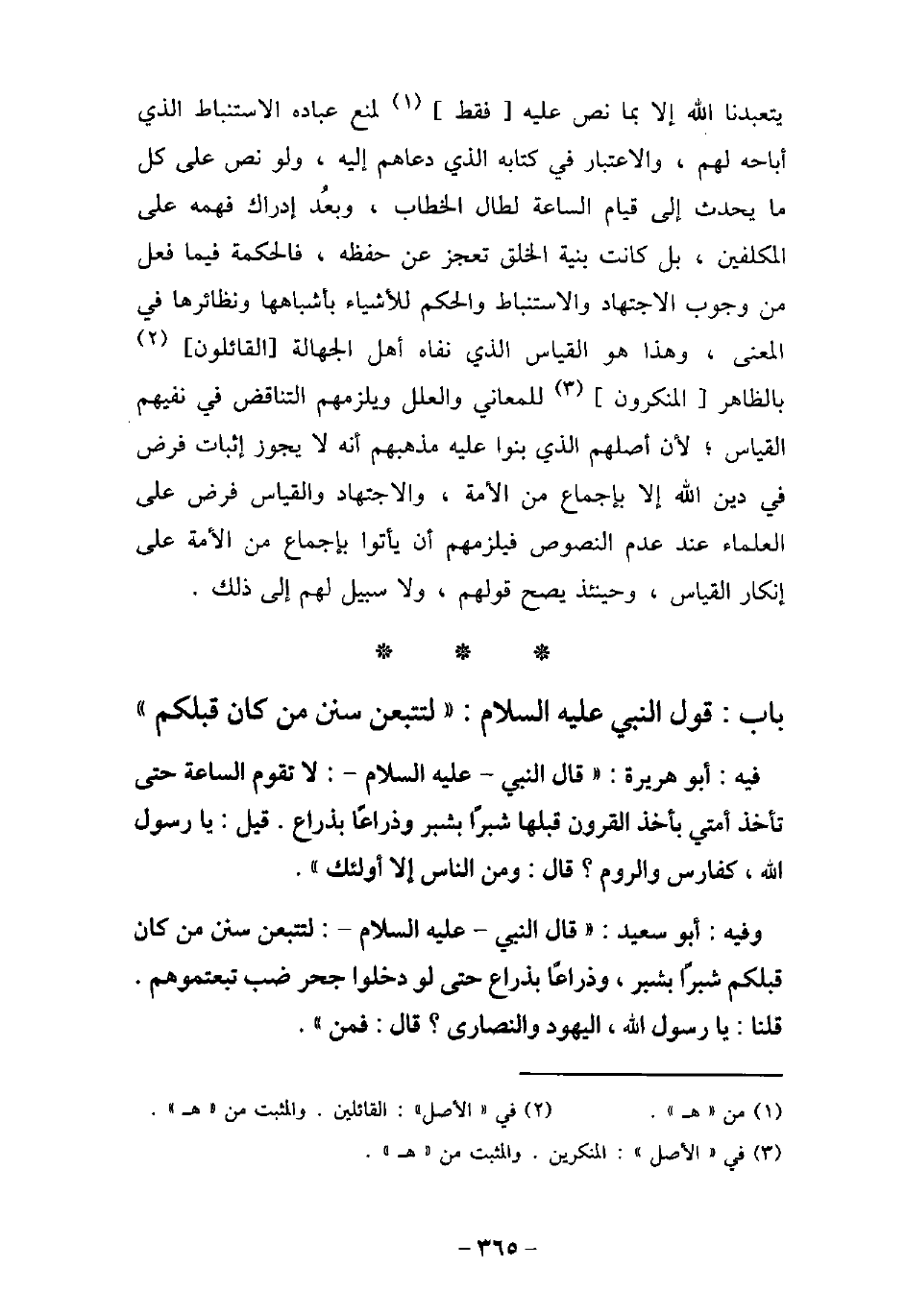 - باب قَوْلِ النَّبِىِّ (صلى الله عليه وسلم) : (لَتَتْبَعُنَّ سَنَنَ مَنْ كَانَ قَبْلَكُمْ