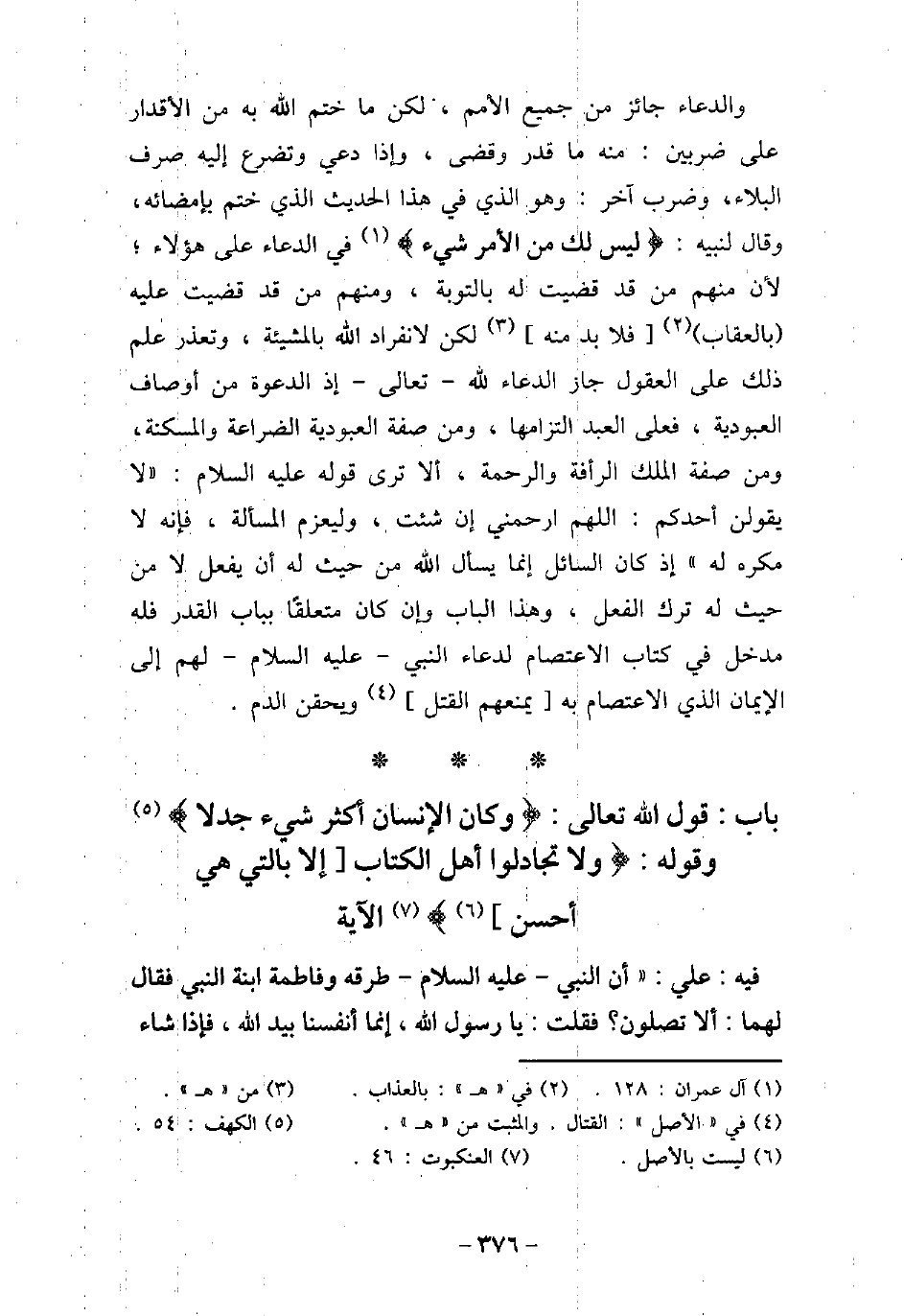 - باب قَول اللَّه تَعَالَى: (وَكَانَ الإنْسَانُ أَكْثَرَ شَىْءٍ جَدَلا (وَقَوْلِهِ: (وَلا تُجَادِلُوا أَهْلَ الْكِتَابِ إِلا بِالَّتِى هِىَ أَحْسَنُ (الآية [العنكبوت: 46]
