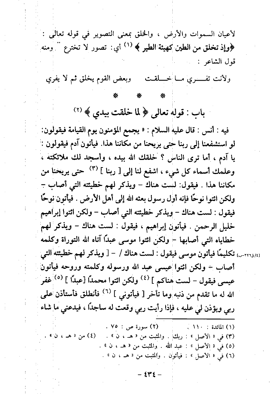 - باب قَوله تَعَالَى: (لِمَا خَلَقْتُ بِيَدَىَّ) [ص: 75]