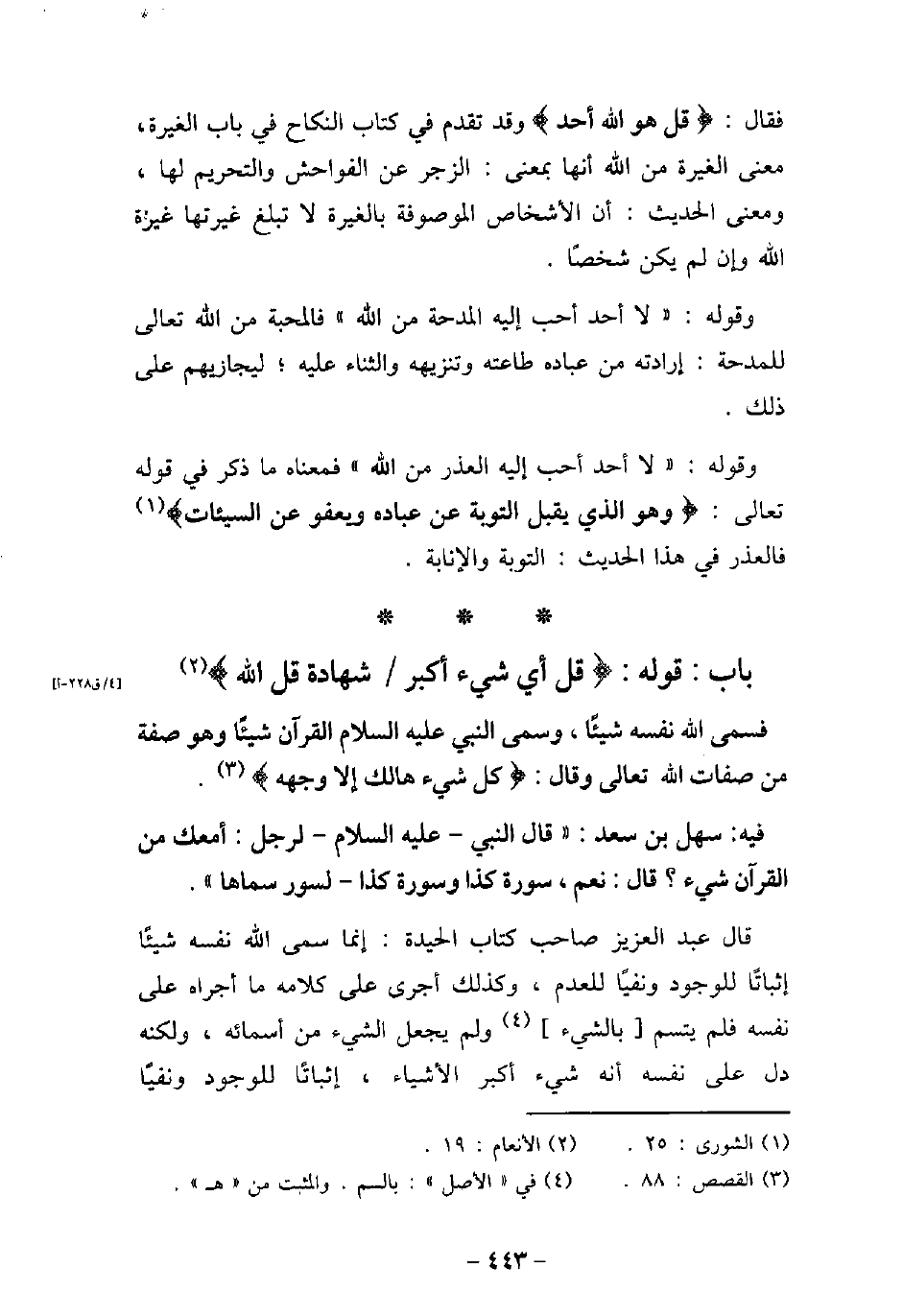 - باب قوله: (قُلْ أَىُّ شَىْءٍ أَكْبَرُ شَهَادَةً قُلِ اللَّهُ) [الأنعام: 19]