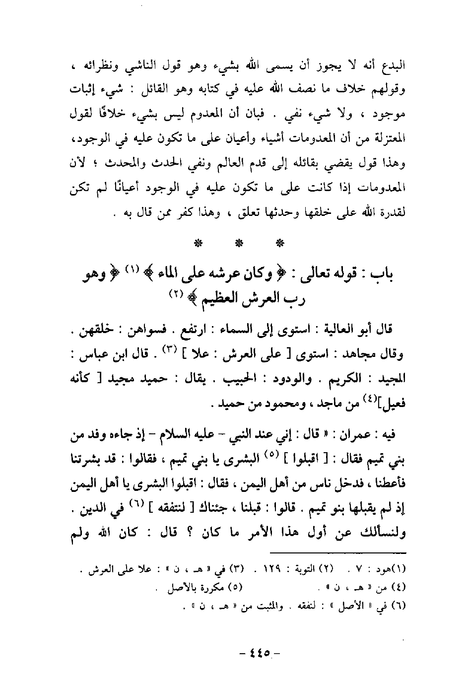 - باب) وَكَانَ عَرْشُهُ عَلَى الْمَاءِ) [هود: 7] ) وَهُوَ رَبُّ الْعَرْشِ الْعَظِيمِ) [التوبة: 129]