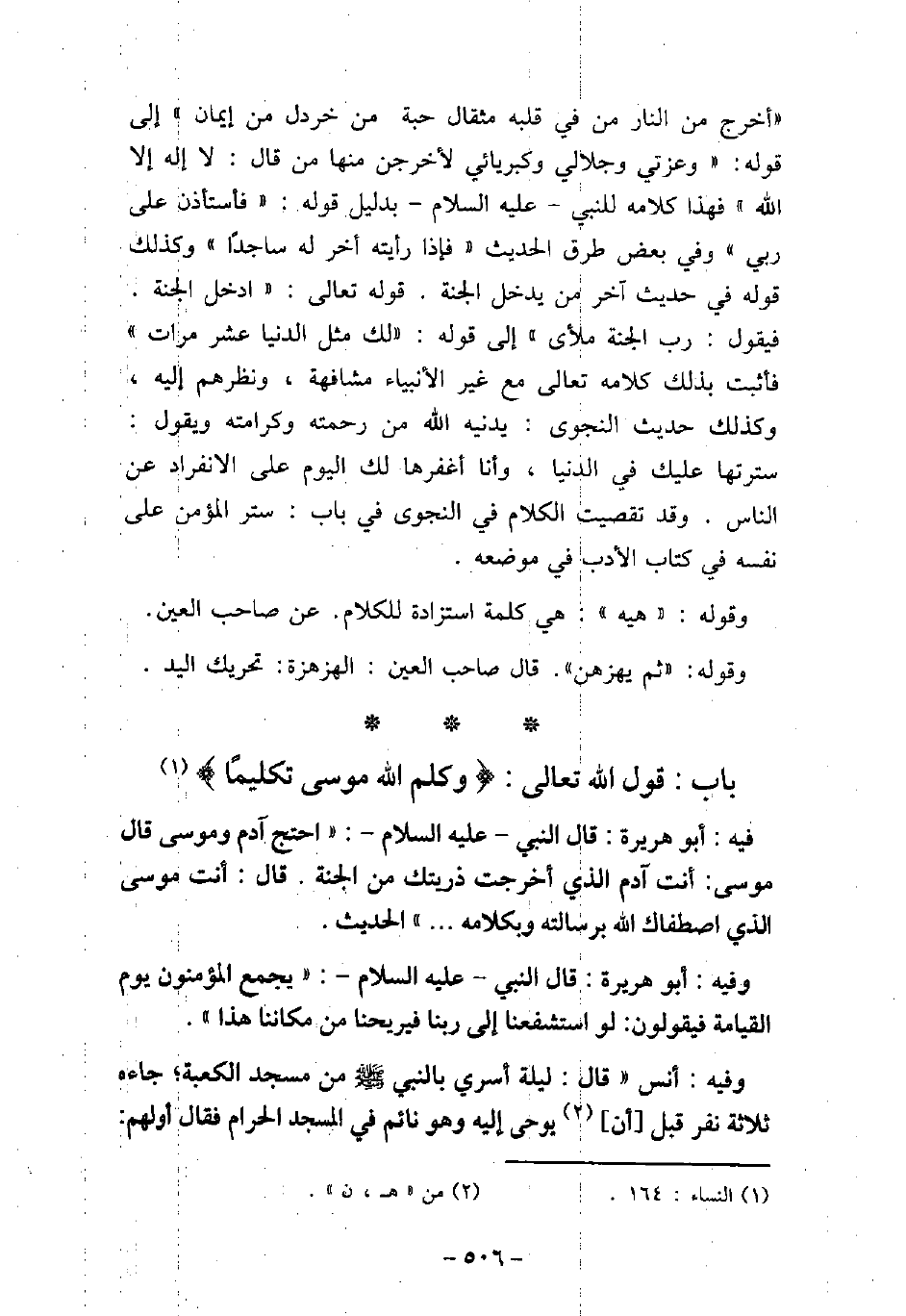 38 - بَاب قَوْل اللَّه تَعَالَى: (وَكَلَّمَ اللَّهُ مُوسَى تَكْلِيمًا) [النساء: 146]