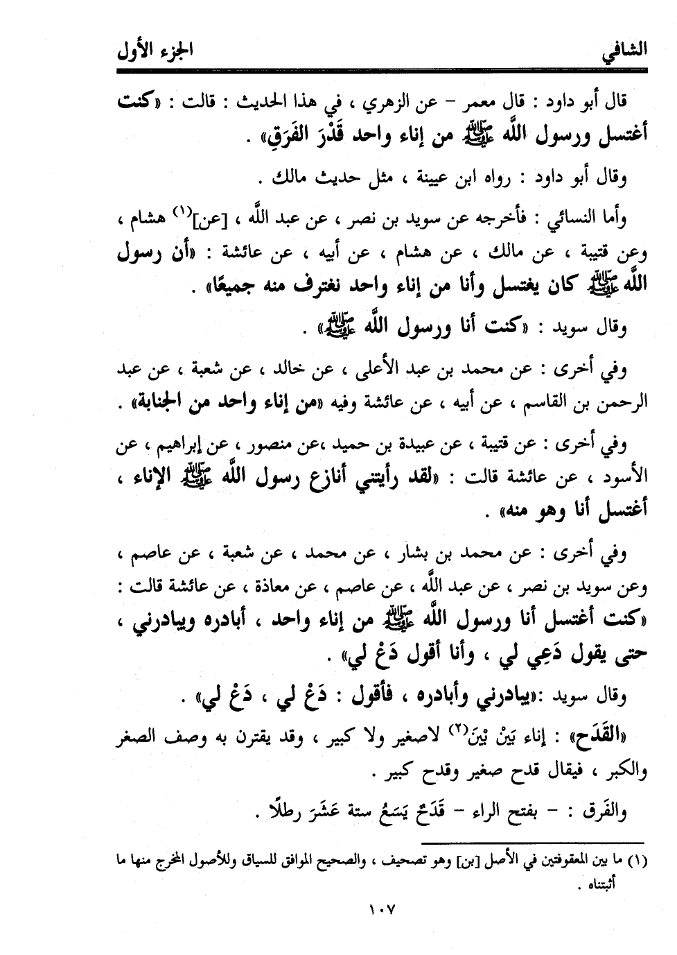 قال أبو داود: قال معمر -عن الزهري، في هذا الحديث: قالت: "كنت أغتسل ورسول اللَّه - صلى الله عليه وسلم - من إناء واحد قَدْرَ الفَرَقِ".