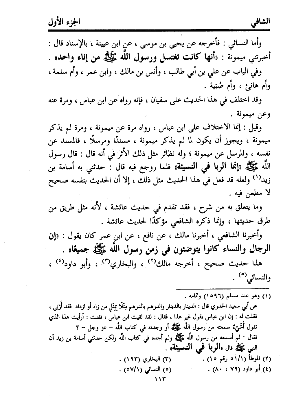 وأخبرنا الشافعي، أخبرنا مالك، عن نافع، عن ابن عمر كان يقول: "إن الرجال والنساء كانوا يتوضئون في زمن رسول اللَّه - صلى الله عليه وسلم - جميعًا".