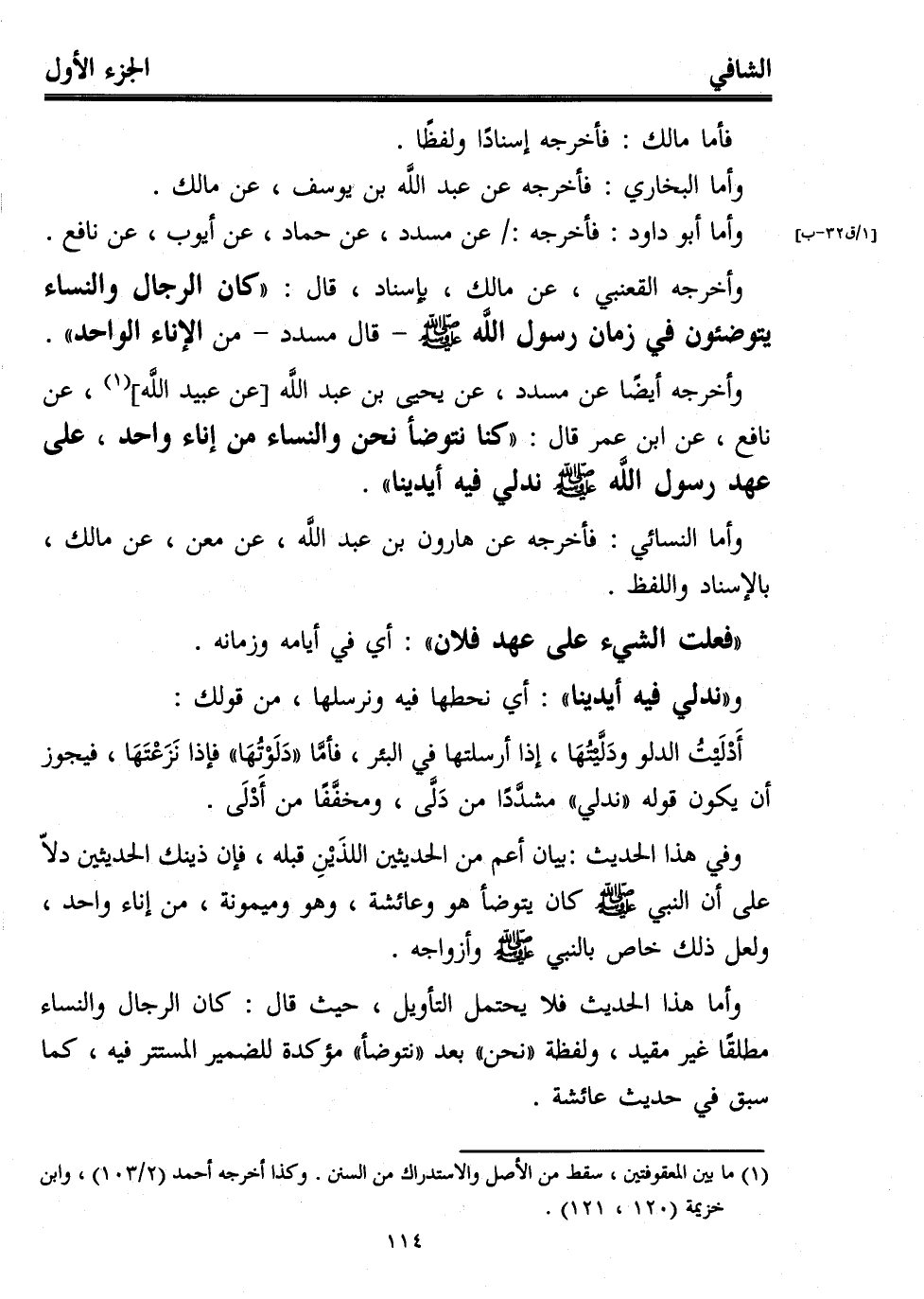 وأما هذا الحديث فلا يحتمل التأويل، حيث قال: كان الرجال والنساء مطلقا غير مقيد، ولفظة "نحن" بعد "نتوضأ" مؤكدة للضمير المستتر فيه، كما سبق في حديث عائشة.