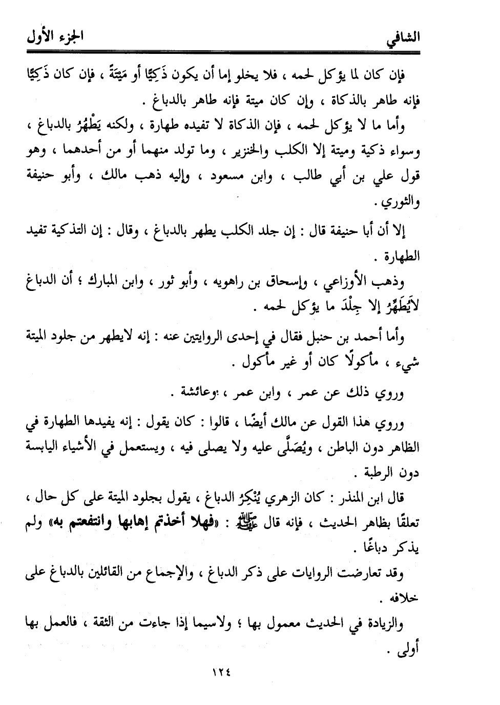 وأما أحمد بن حنبل فقال في إحدى الروايتين عنه: إنه لا يطهر من جلود الميتة شيء، مأكولًا كان أو غير مأكول.