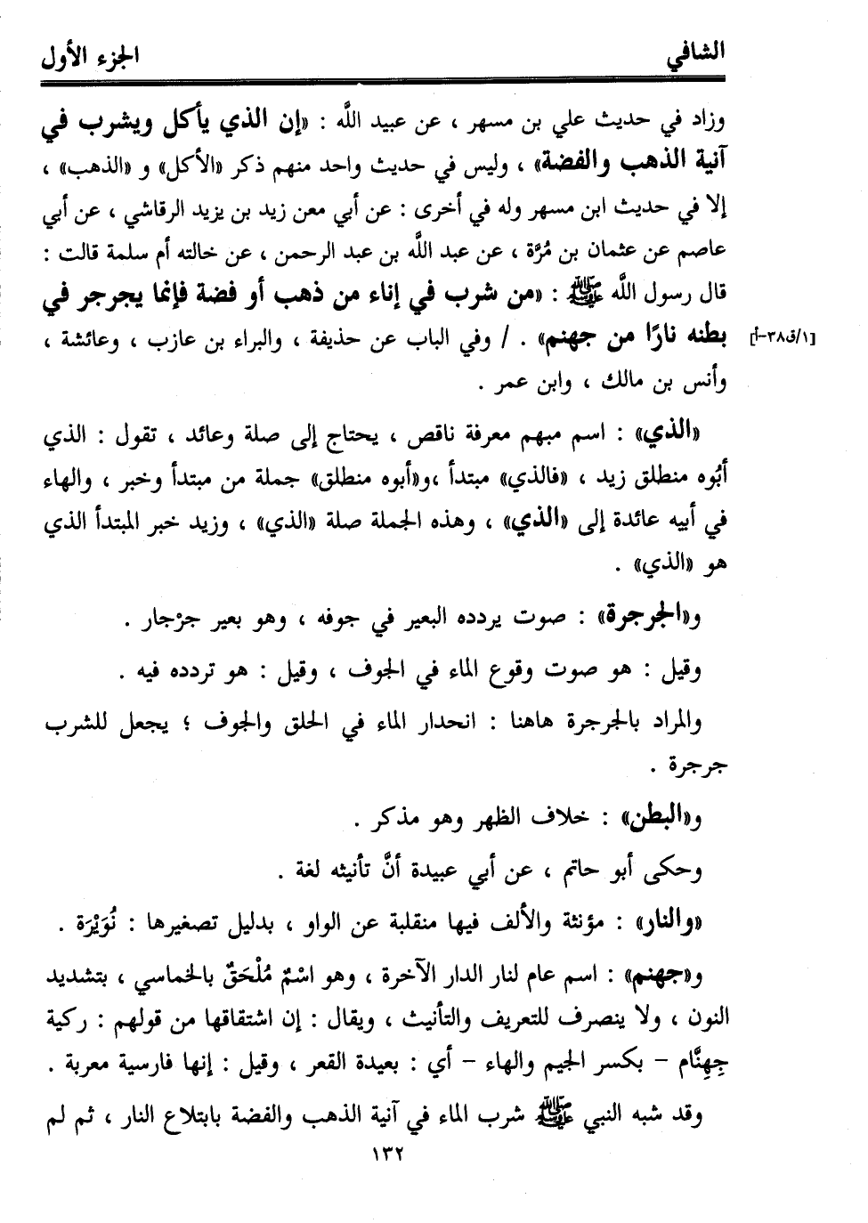 وقد شبه النبي - صلى الله عليه وسلم - شرب الماء في آنية الذهب والفضة بابتلاع النار، ثم لم