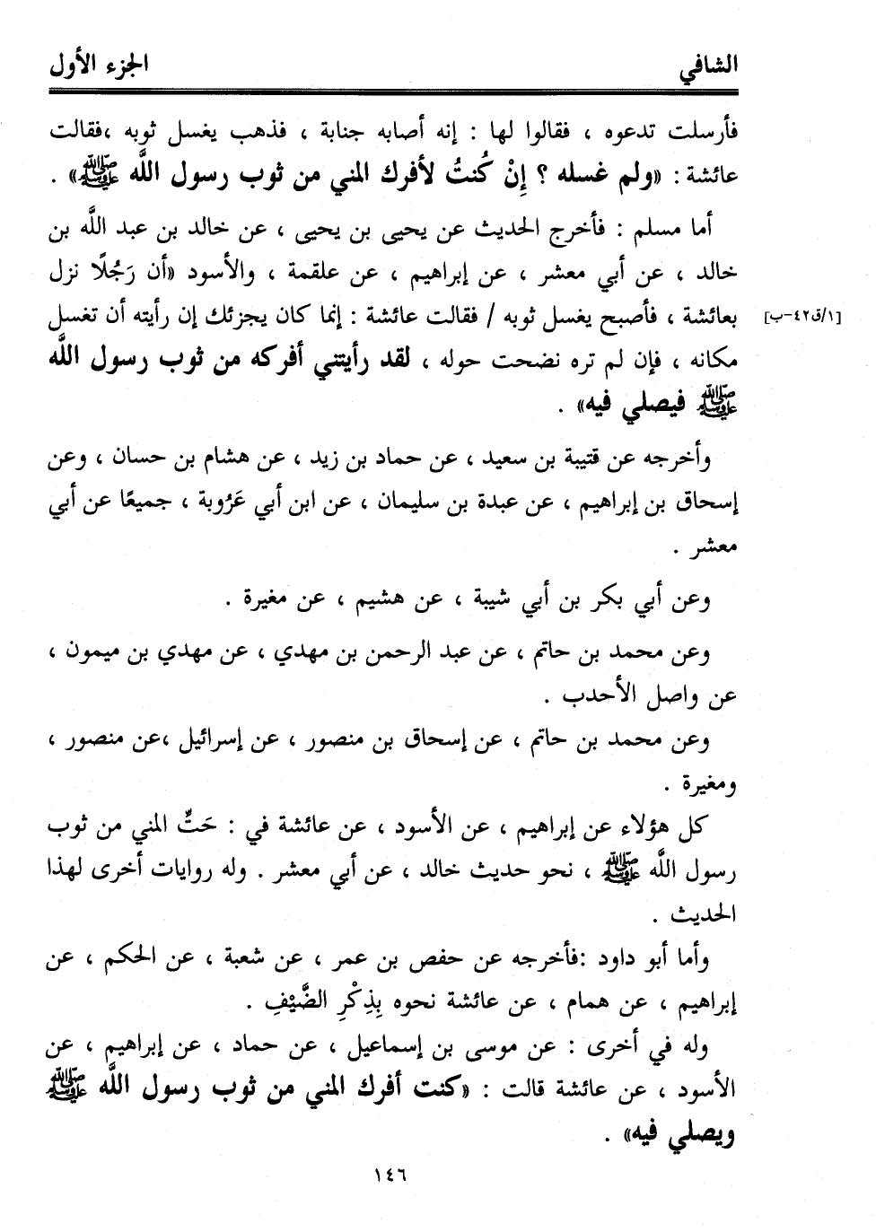 كل هؤلاء عن إبراهيم، عن الأسود، عن عائشة في: حَتِّ المني من ثوب رسول اللَّه - صلى الله عليه وسلم -، نحو حديث خالد، عن أبي معشر. وله روايات أخرى لهذا الحديث.