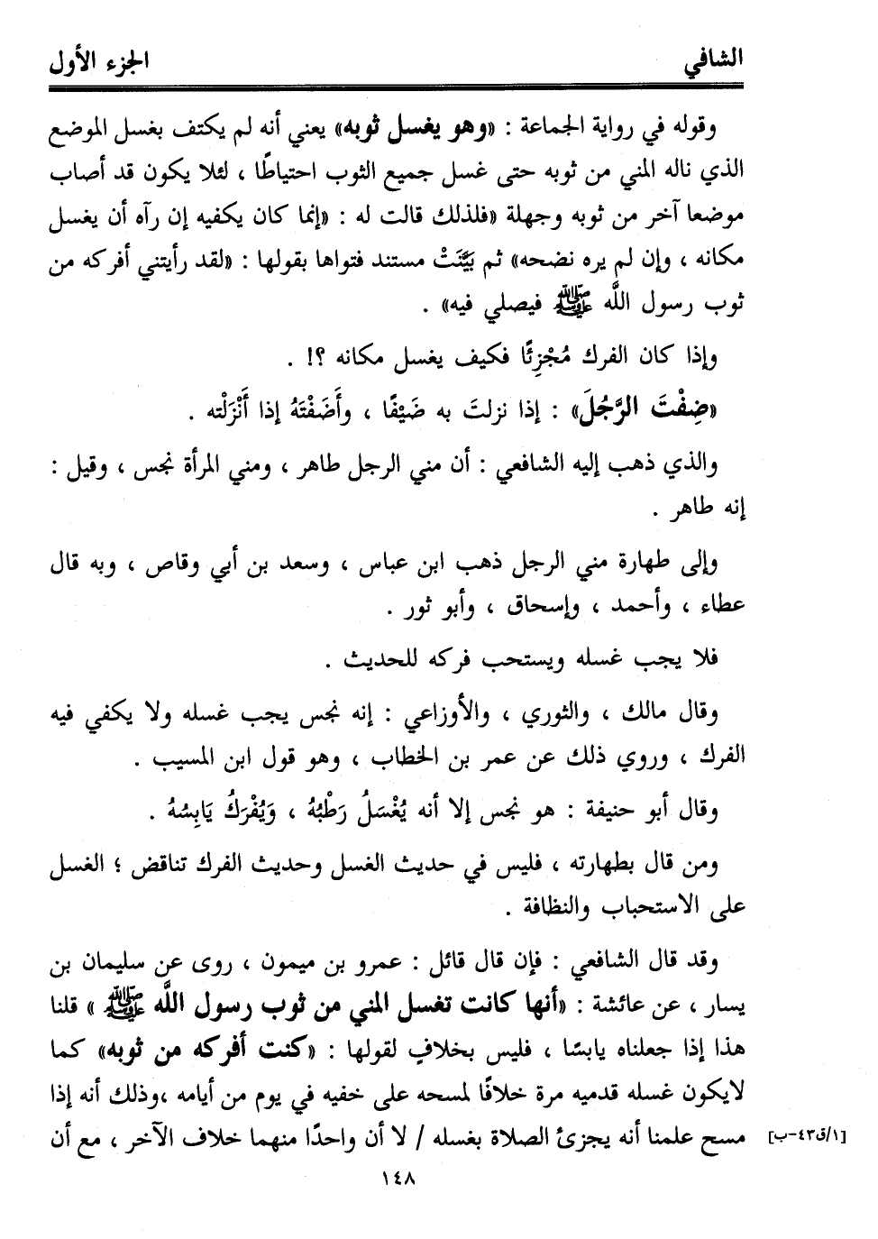 والذي ذهب إليه الشافعي: أن مني الرجل طاهر، ومني المرأة نجس، وقيل: إنه طاهر.