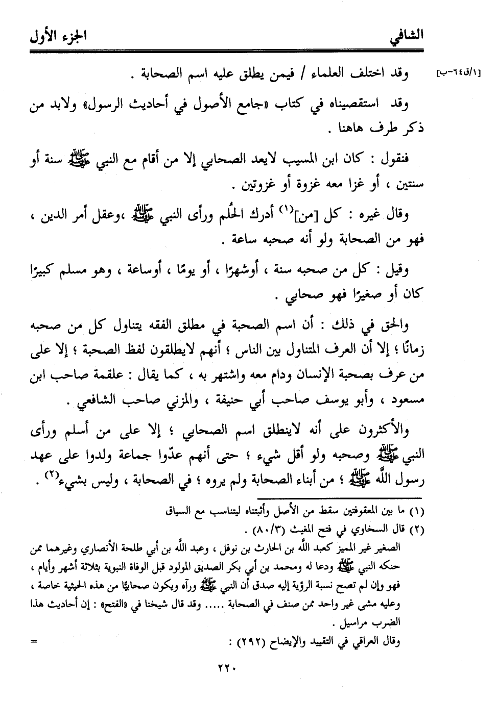 وقيل: كل من صحبه سنة، أو شهرًا، أو يومًا، أو ساعة، وهو مسلم كبيرًا كان أو صغيرًا فهو صحابي.