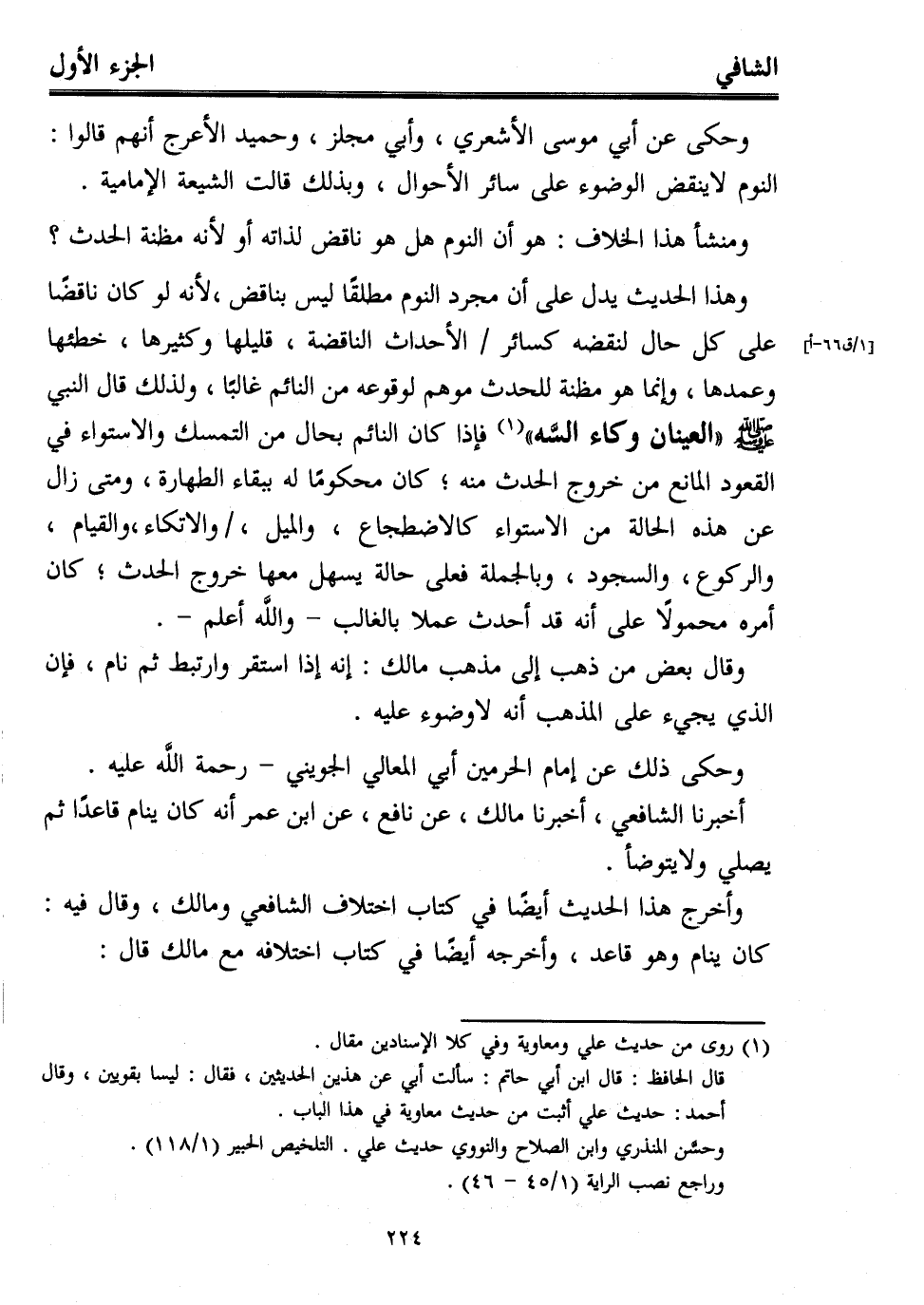 وأخرج هذا الحديث أيضًا في كتاب اختلاف الشافعي ومالك، وقال فيه: كان ينام وهو قاعد، وأخرجه أيضًا في كتاب اختلافه مع مالك قال: