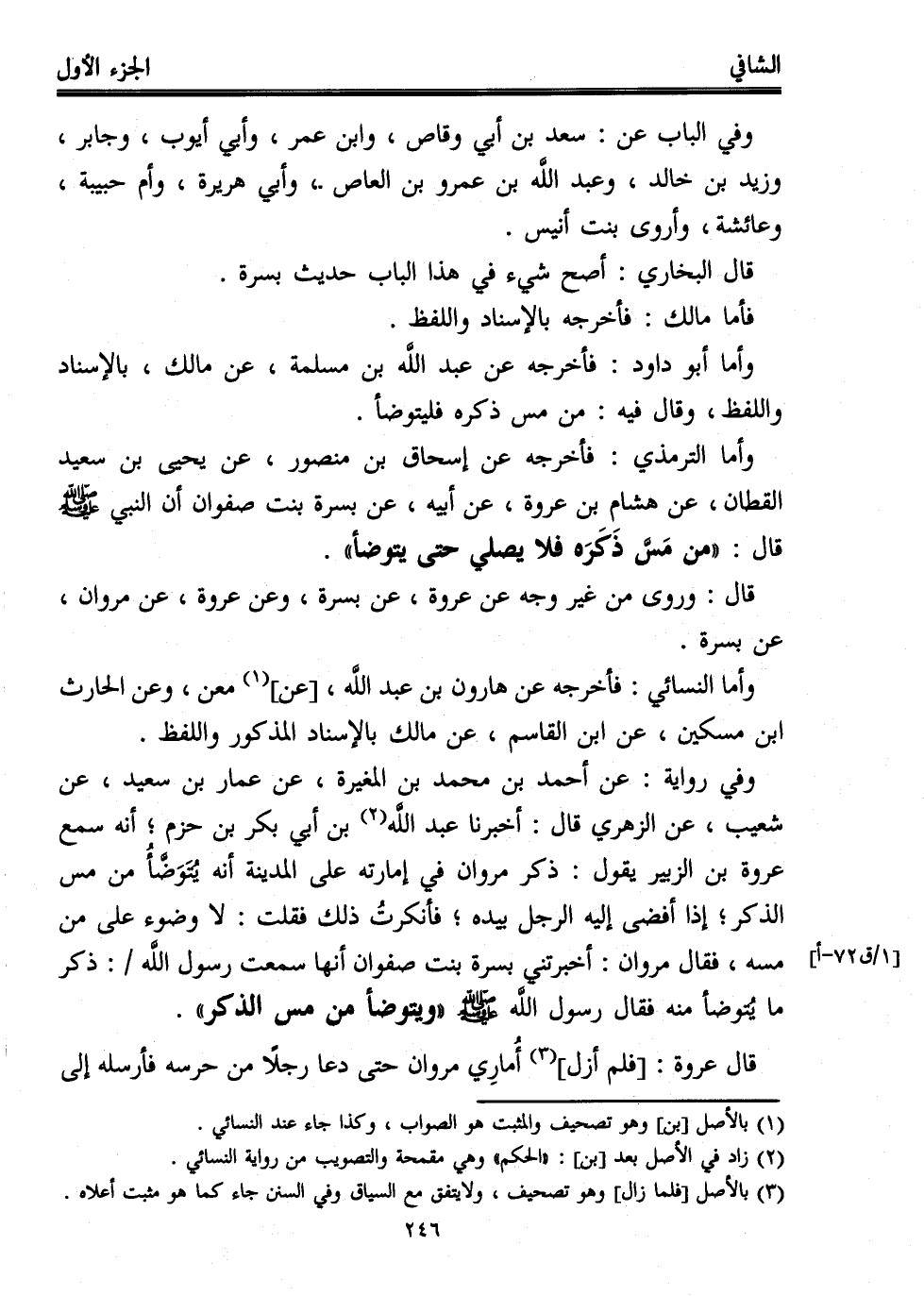 قال: وروى من غير وجه عن عروة، عن بسرة، وعن عروة، عن مروان، عن بسرة.